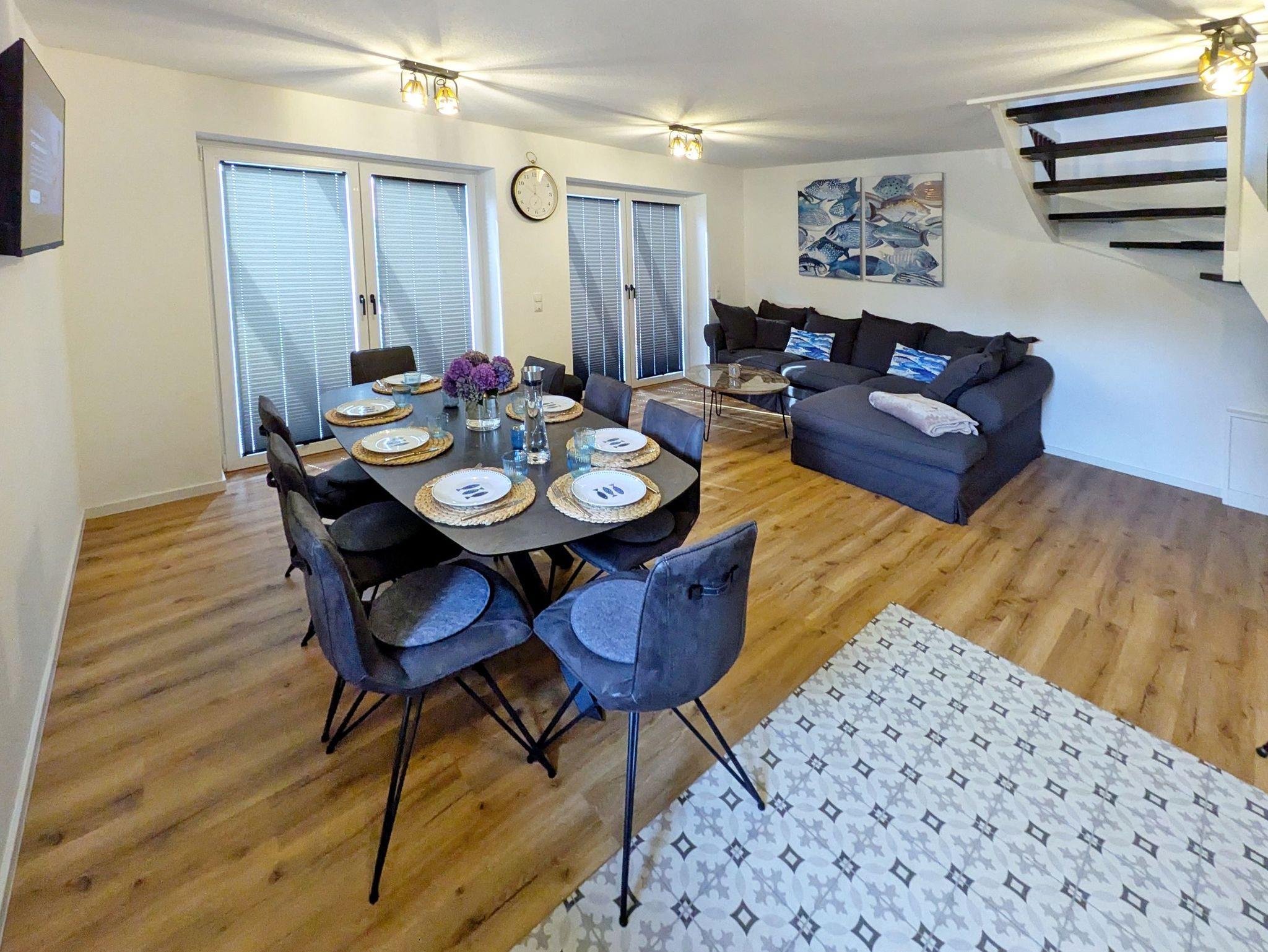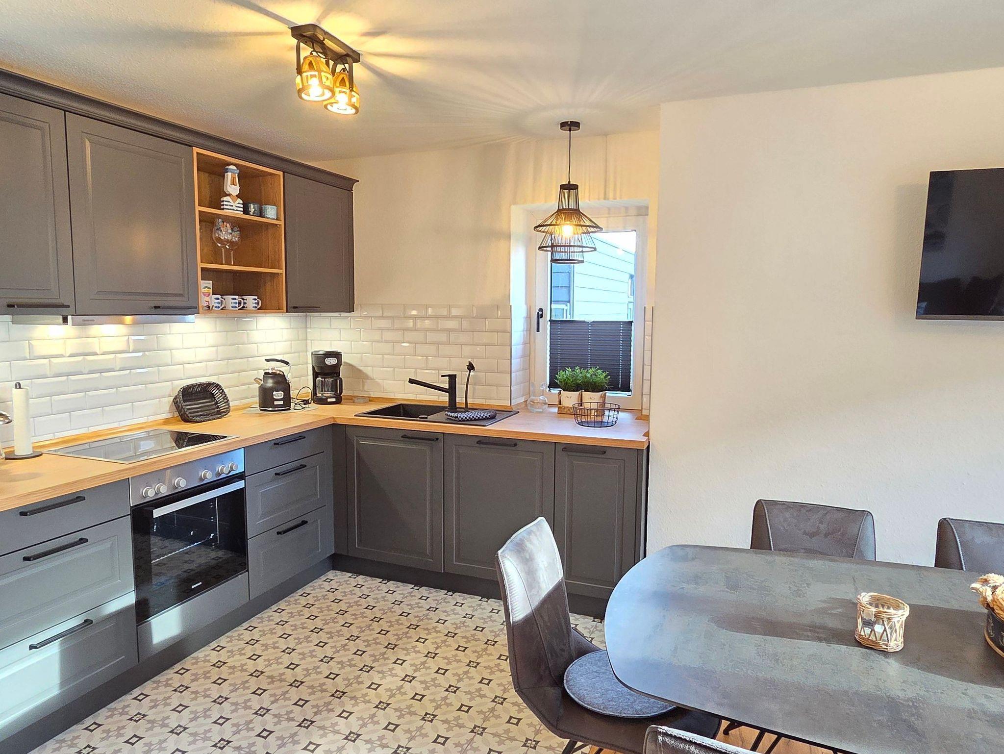 Im hellen Wohnbereich mit Smart-TV erwartet Sie eine offene, voll ausgestattete Küche samt Essbereich. Neben Filter-Kaffeemaschine, Toaster, Wasserkocher, Eierkocher, Handmixer, Backofen und Geschirrspüler, steht Ihnen auch ein großer Kühlschrank mit Tiefkühlfach zur Verfügung. Für die kleinen Gäste gibt es Kinderbett, Hochstuhl, kindgerechtes Besteck und Spielzeug.