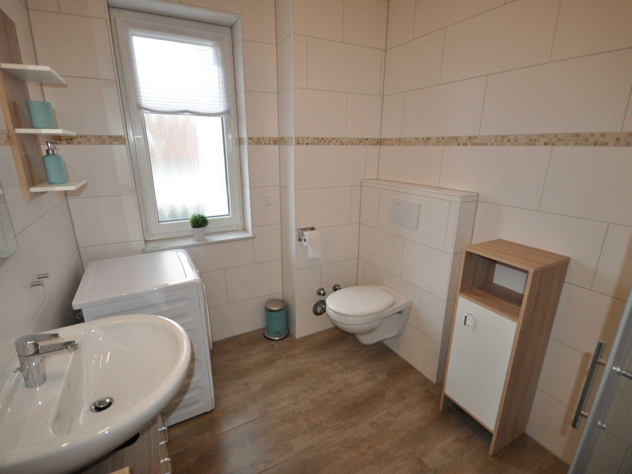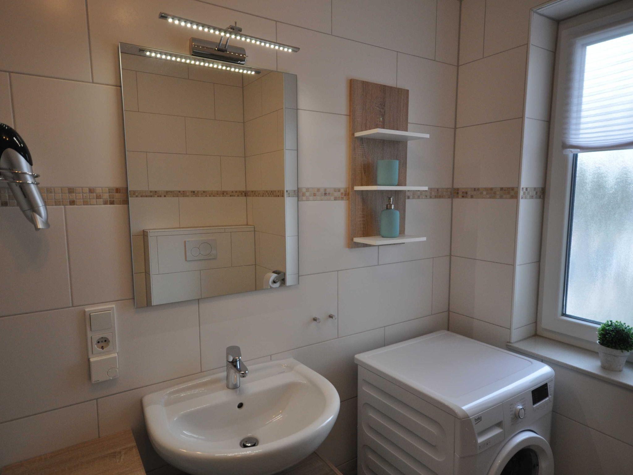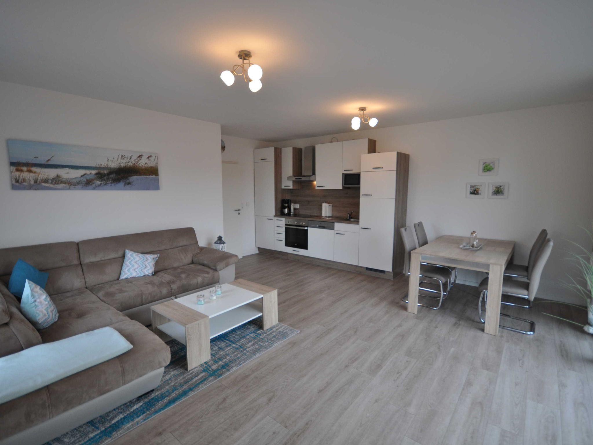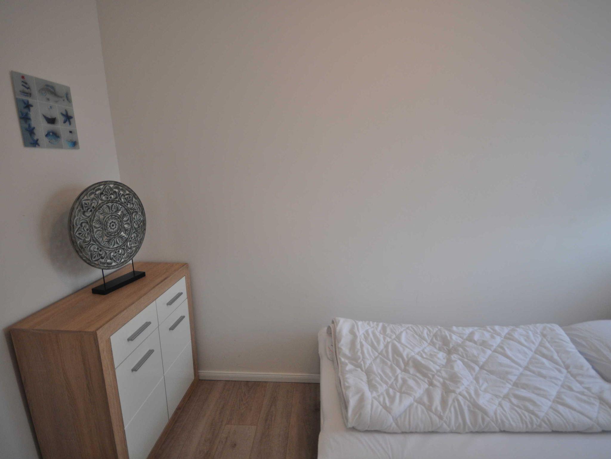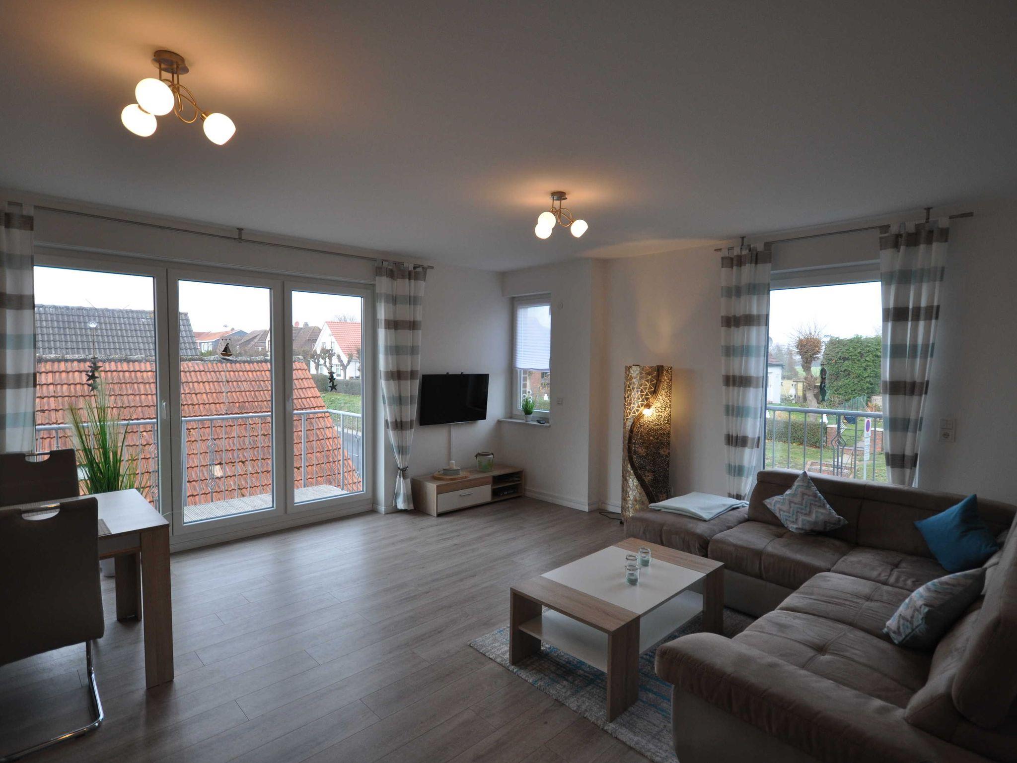 Diese etwa 60m² große, geschmackvoll eingerichtete Obergeschosswohnung mit Balkon befindet sich in der 1. Etage eines Mehrfamilienhauses und verfügt über einen lichtdurchfluteten Wohnbereich mit Couchgarnitur, Flachbild-TV, einem Esstisch und eine integrierte Küchenzeile. Desweiteren ist die Wohnung mit 2 separaten Schlafzimmern (ein Doppelbett mit durchgehender Matratze ca. 1,8 m x 2 m, 2 Einzelbetten) sowie mit einem modernen Duschbad ausgestattet und bietet daher Platz für 4 Personen und ein Baby/Kleinkind. Auf den Böden sind Fliesen bzw. Laminat verlegt, die Fenster sind mit Rollläden ausgestattet. WLAN steht Ihnen kostenlos zur Verfügung.