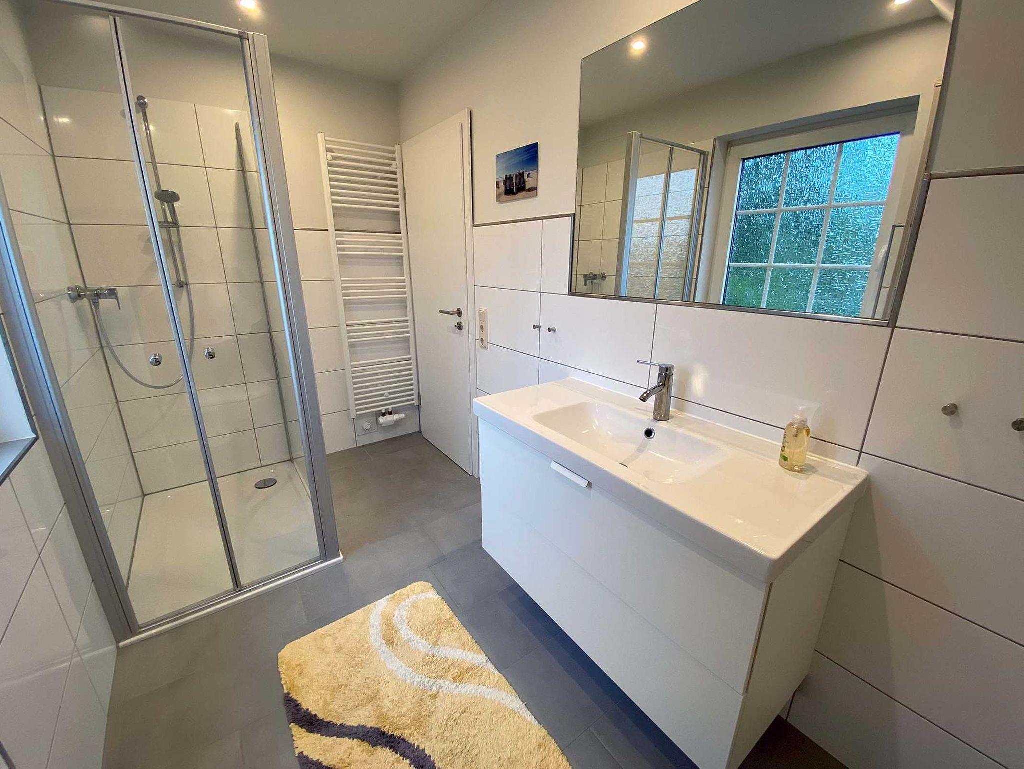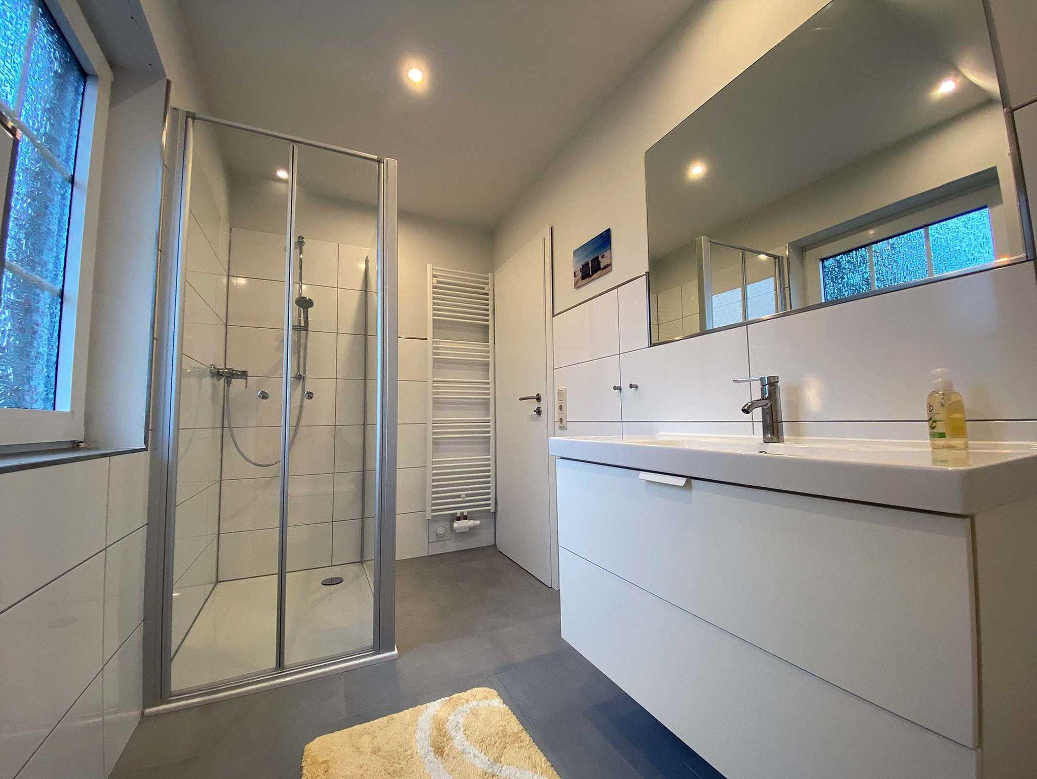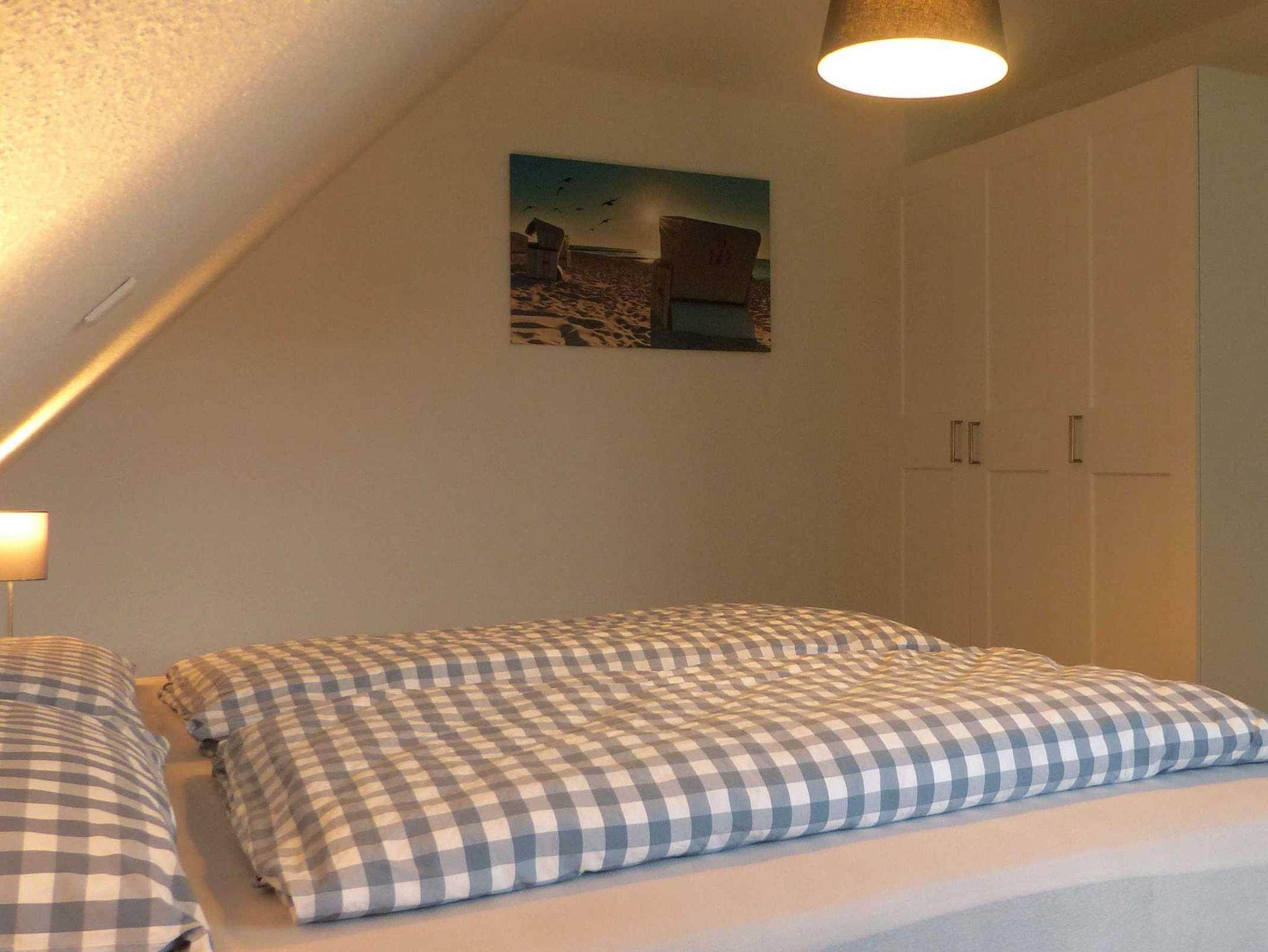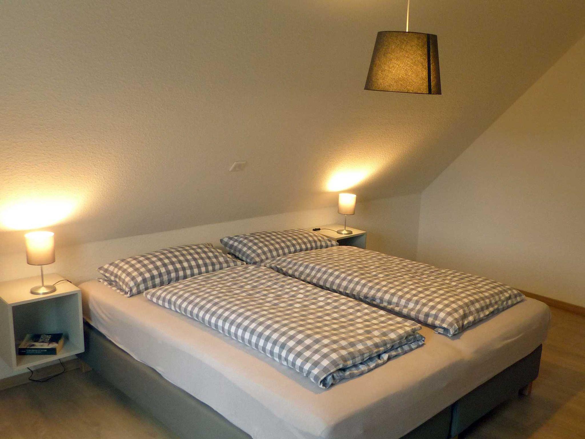 Im Erdgeschoss verfügt das Haus über ein großes, helles Wohnzimmer mit Sofalandschaft und 50 Zoll großem SAT-TV, Essbereich mit massivem Holzesstisch sowie einer separaten, sehr gut ausgestatteten Küche (mit Mikrowelle und Spülmaschine). Weiterhin befindet sich im EG ein neues Gäste-WC mit Handwaschbecken. Vom Wohnzimmer aus haben Sie Zugang zur sonnigen Terrasse sowie dem großen Garten. Im 1. OG finden Sie zwei Schlafzimmer (eins davon mit Doppelboxspringbett und das zweite mit zwei Einzelbetten) sowie ein helles und modernes Bad mit übergroßer Dusche. Im Dachgeschoss befindet sich ein Schlafstudio mit zwei weiteren Einzelbetten.