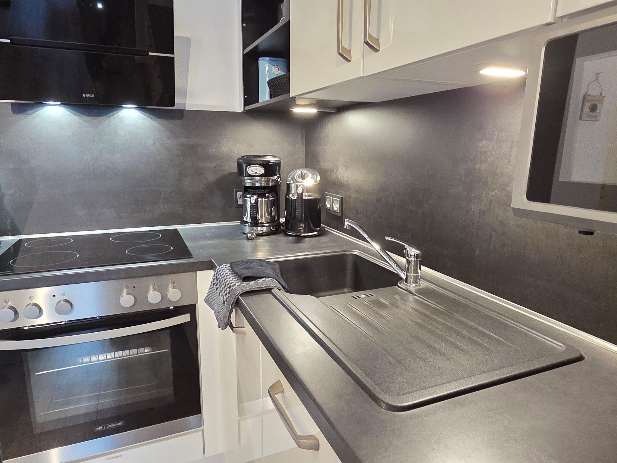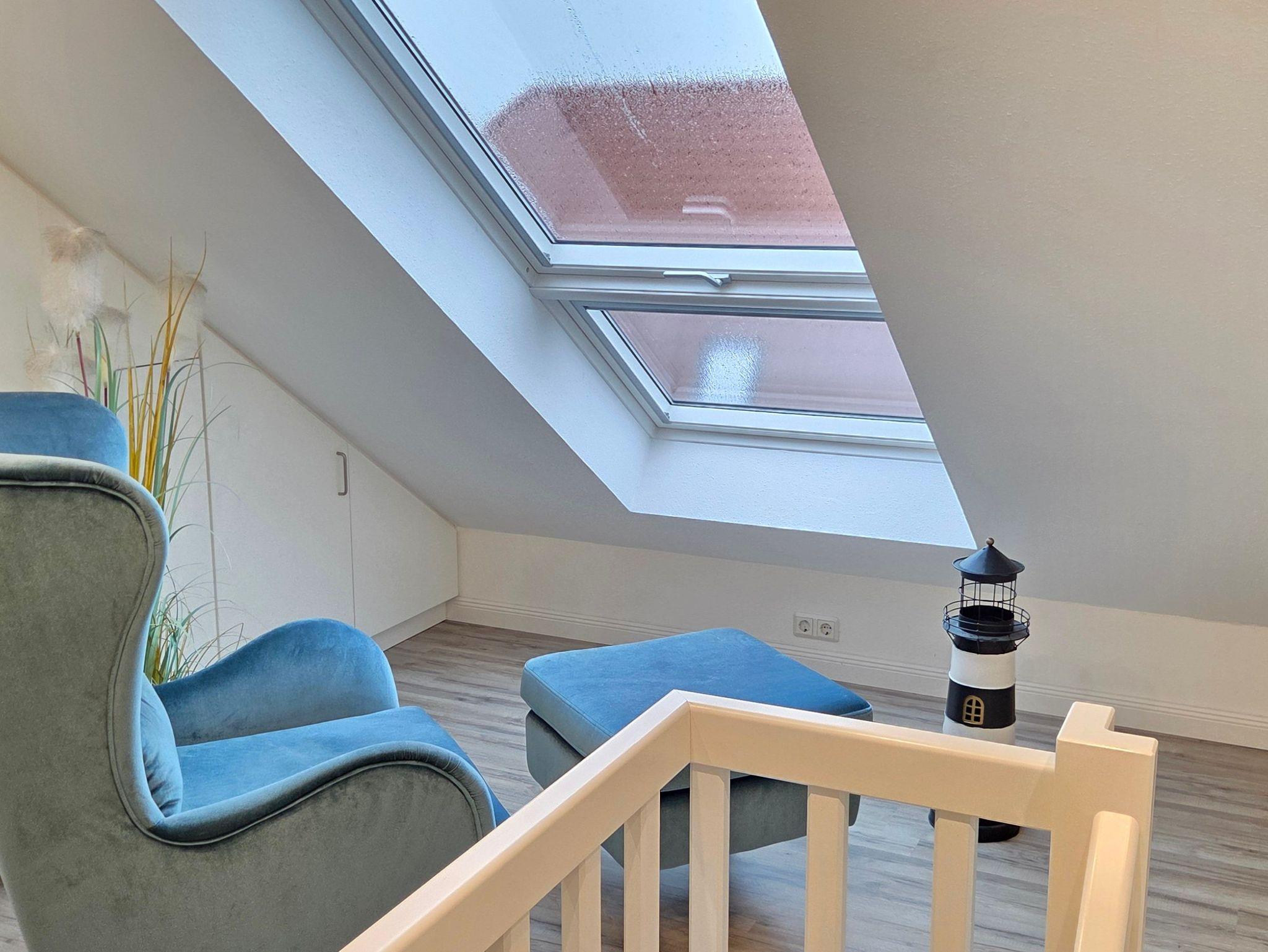 Die Galerie im Dachboden kann auch als Spielfläche für Kinder genutzt werden. Die sonnige Terrasse lädt zum Entspannen, Essen oder ein Glas Wein am Abend ein, während die voll ausgestattete offene Küche, u.a. mit Kaffeemaschine, Eierkocher, Toaster, Waffeleisen, Handmixer, Wasserkocher, Backofen, Mikrowelle, Geschirrspüler, Tiefkühlfach, keine Wünsche offenlässt.
