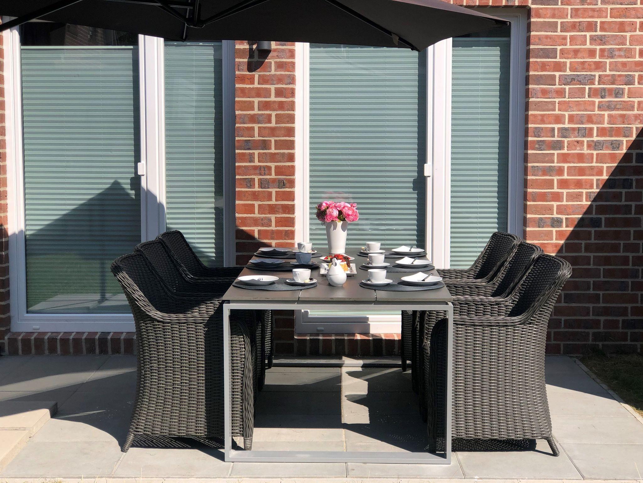 Der Außenbereich des Ferienhauses Franziskahus verfügt über einen Garten mit einer möblierte Terrasse in Südausrichtung. Neben einem Parkplatz direkt am Haus, ist auch eine Unterstellmöglichkeit für Ihre Fahrräder sowie ein Bollerwagen vorhanden.