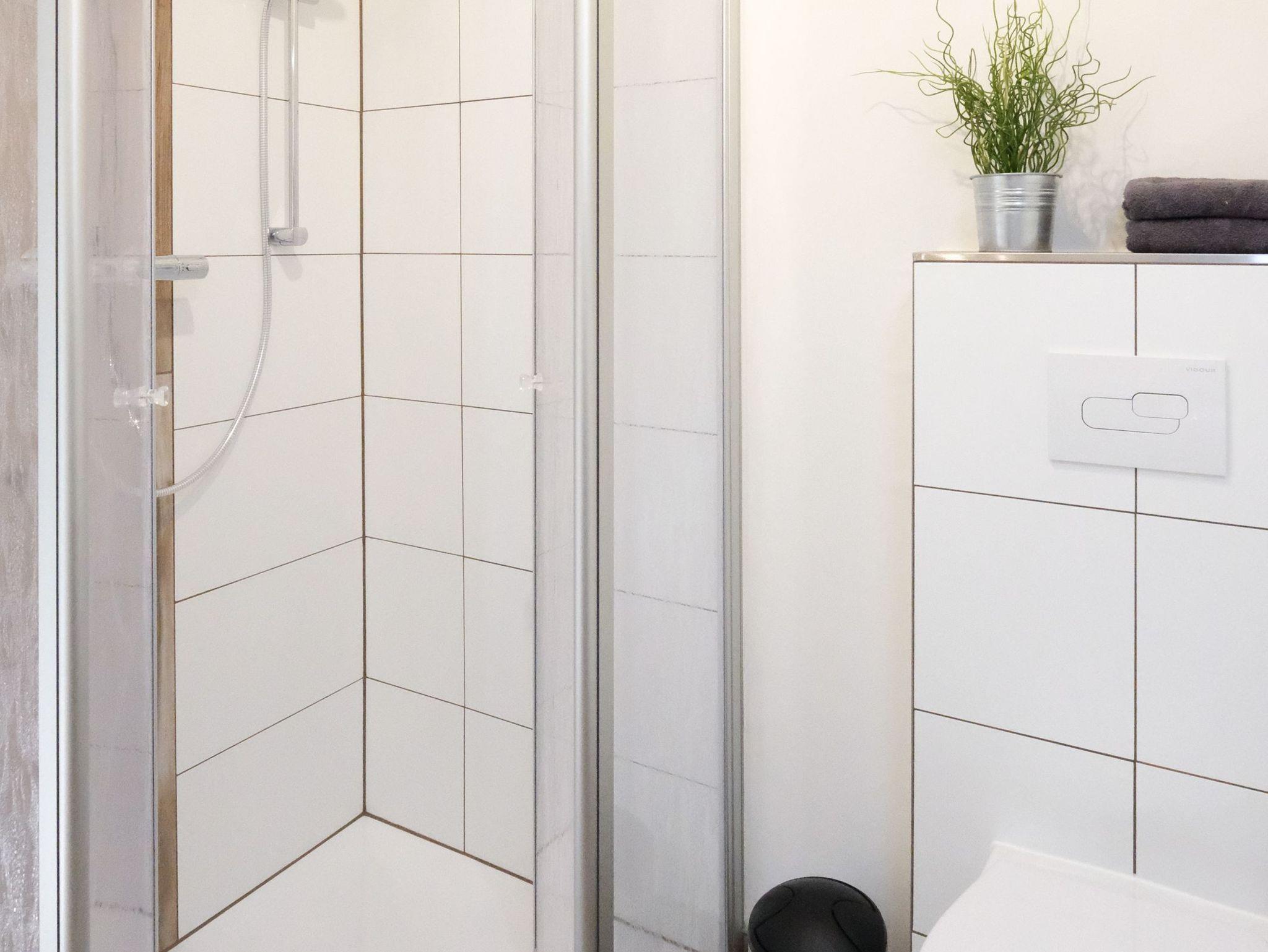 Zusätzlich zum Balkon mit Sitzmöbeln und Sonnenschirm steht Ihnen die große Rasenfläche und die gemeinschaftlich genutzte Gartenterrasse mit Grillmöglichkeit und gemütlicher Möblierung zur freien Verfügung. Vom geräumigen Eingangsbereich des Hauses haben Sie Zugang zum Wasch- und Trockenraum. Auf den fest reservierten PKW-Stellplätzen können Sie Ihren PKW direkt neben dem Haus parken. Ab Frühjahr 2024 bieten wir unseren Gästen zudem eine abschließbare Fahrradgarage inkl. E-Bike-Lademöglichkeit an.