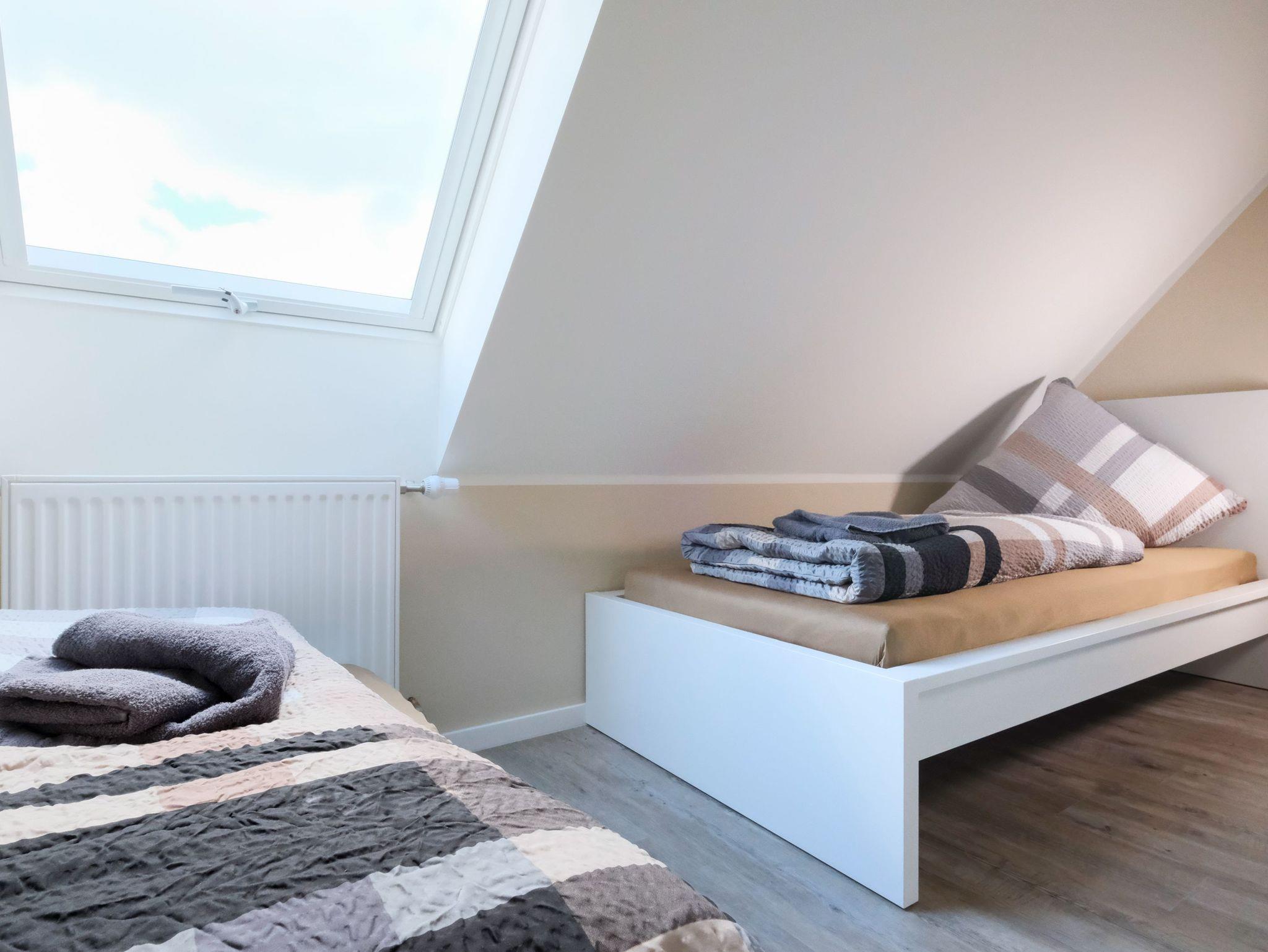 Die stilvoll eingerichtete Ferienwohnung bietet ausreichend Platz für insgesamt 4 Personen. Durch die beiden Schlafzimmer mit Doppelbett (180x200) und zwei Einzelbetten ist die Ferienwohnung ideal für Familien mit zwei Kinder oder Paare geeignet. Beide Schlafzimmer verfügen über praktische Wandschränke und Verdunkelungsmöglichkeiten. ist durch die beiden Schlafzimmer ideal für 4 Personen geeignet.