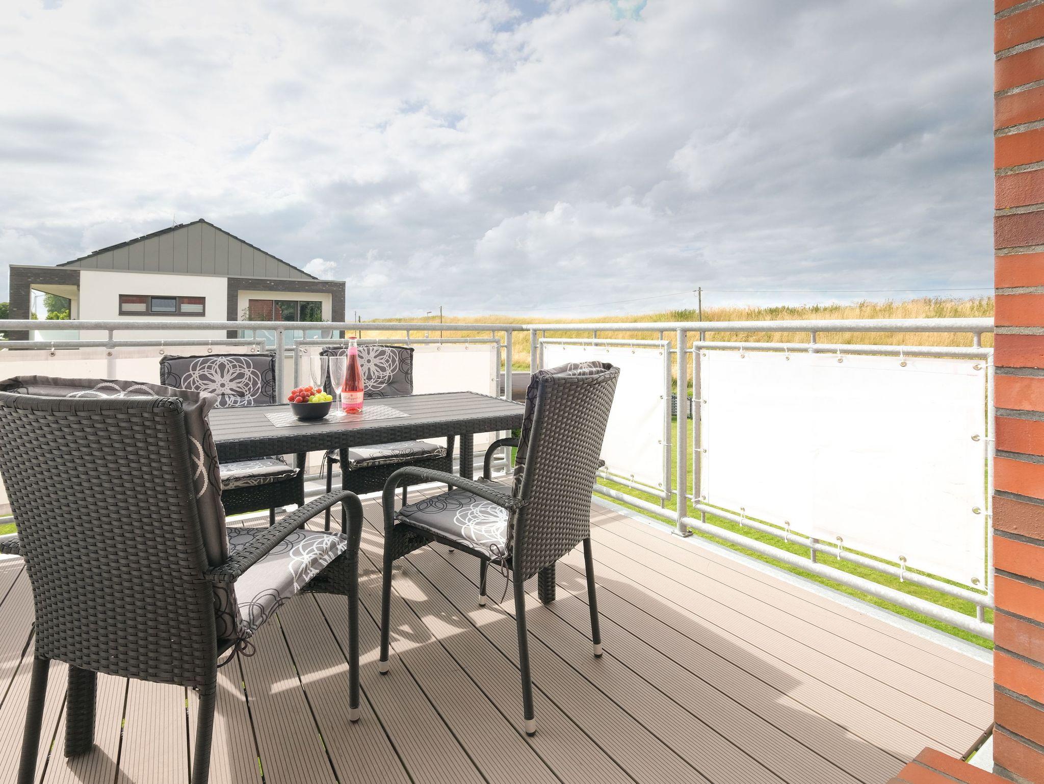 Mit 40m² ist der Liegeplatz Nr. 6 die kleinste Ferienwohnung des Objektes ? verspricht seinen Bewohnern womöglich aber die schönsten Abendstunden in dem nach Westen ausgerichteten Wohn- und Esszimmer, sowie dem großzügigen Westbalkon mit bequemen Sitzmöglichkeiten. Lassen Sie hier Ihren Strandtag bei einem Drink oder einem Snack ausklingen und beobachten Sie den traumhaften Sonnenuntergang über dem Deich.