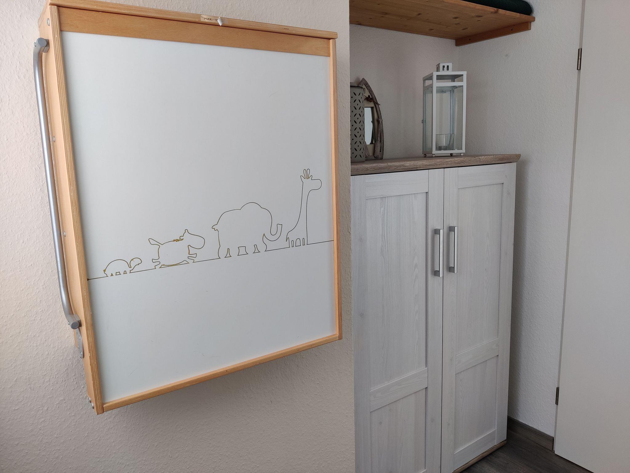 ein Schlafzimmer mit einem Einzelbett (90cm x 200cm), Wickeltisch und Kommode