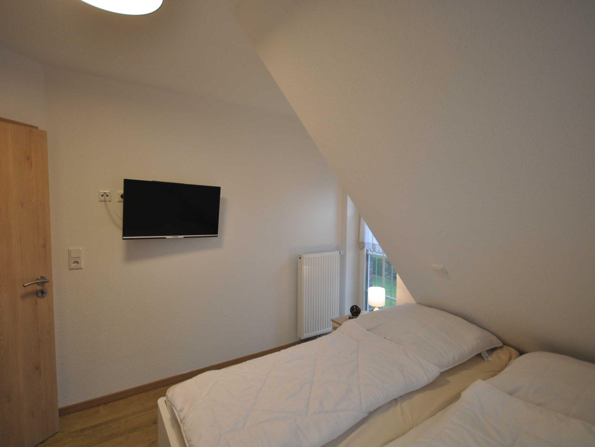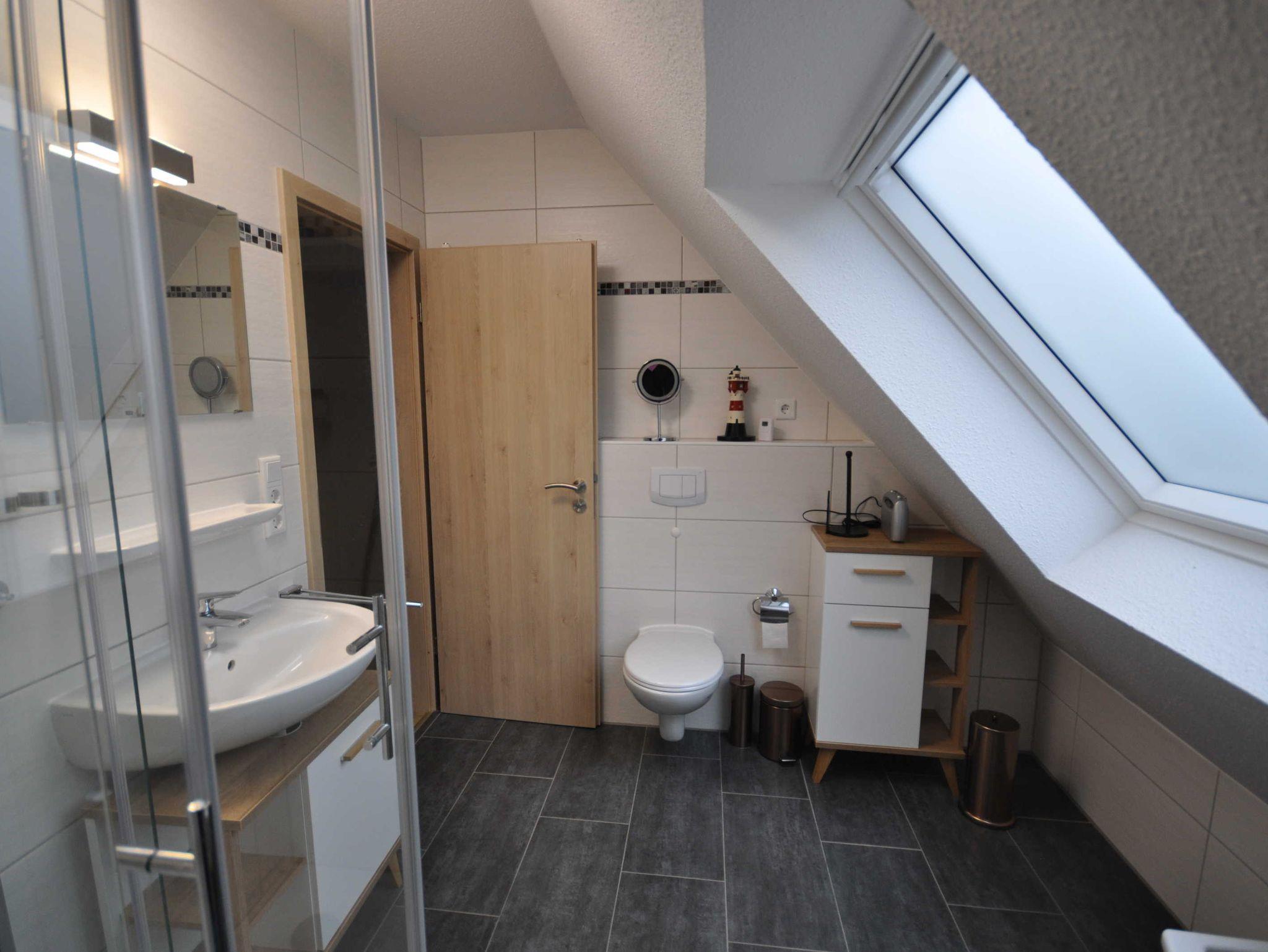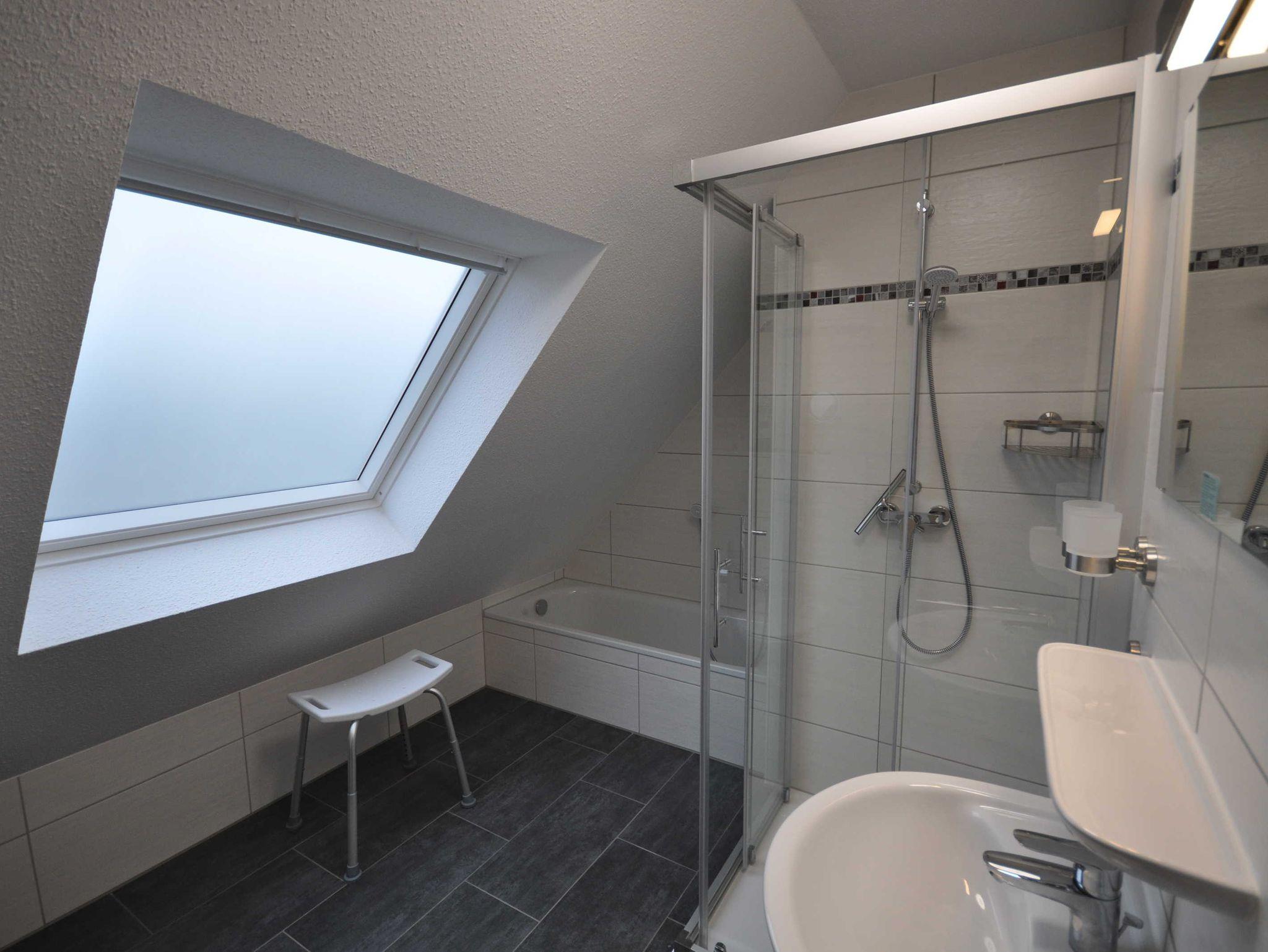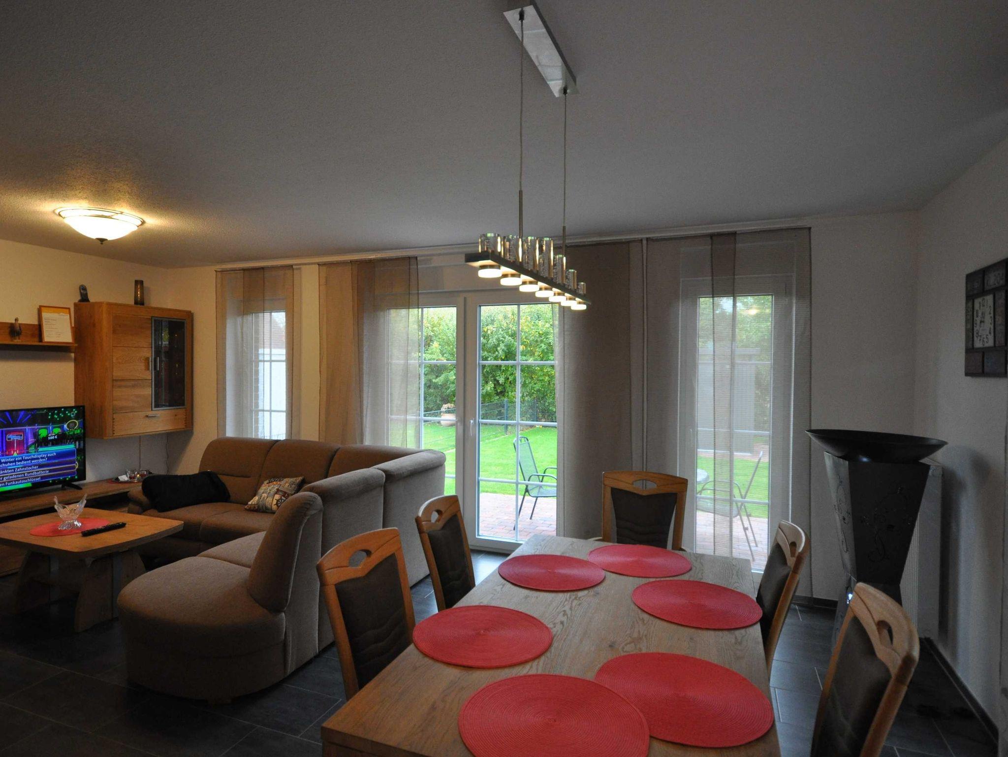 Im Erdgeschoss der 80m² großen Doppelhaushälfte befindet sich ein großzügiger und freundlicher Bereich für Kochen, Essen und Wohnen, ein Kaminofen sorgt für Wohlfühlatmosphäre. Zudem ist ein zusätzliches Bad mit Dusche vorhanden. Das Obergeschoss verfügt über drei mit TV ausgestatteten Schlafzimmern (2x je ein Doppelbett, 1x Einzelbett) sowie über ein großzügiges Duschbad inkl. Badewanne und bietet somit ausreichend Platz für die ganze Familie. WLAN steht Ihnen kostenfrei zur Verfügung. Alle Fenster sind mit Rollläden ausgestattet und im gesamten Objekt sind Fliesen bzw. Laminat verlegt. Eine hochwertige Ausstattung sorgt für entsprechenden Wohnkomfort.