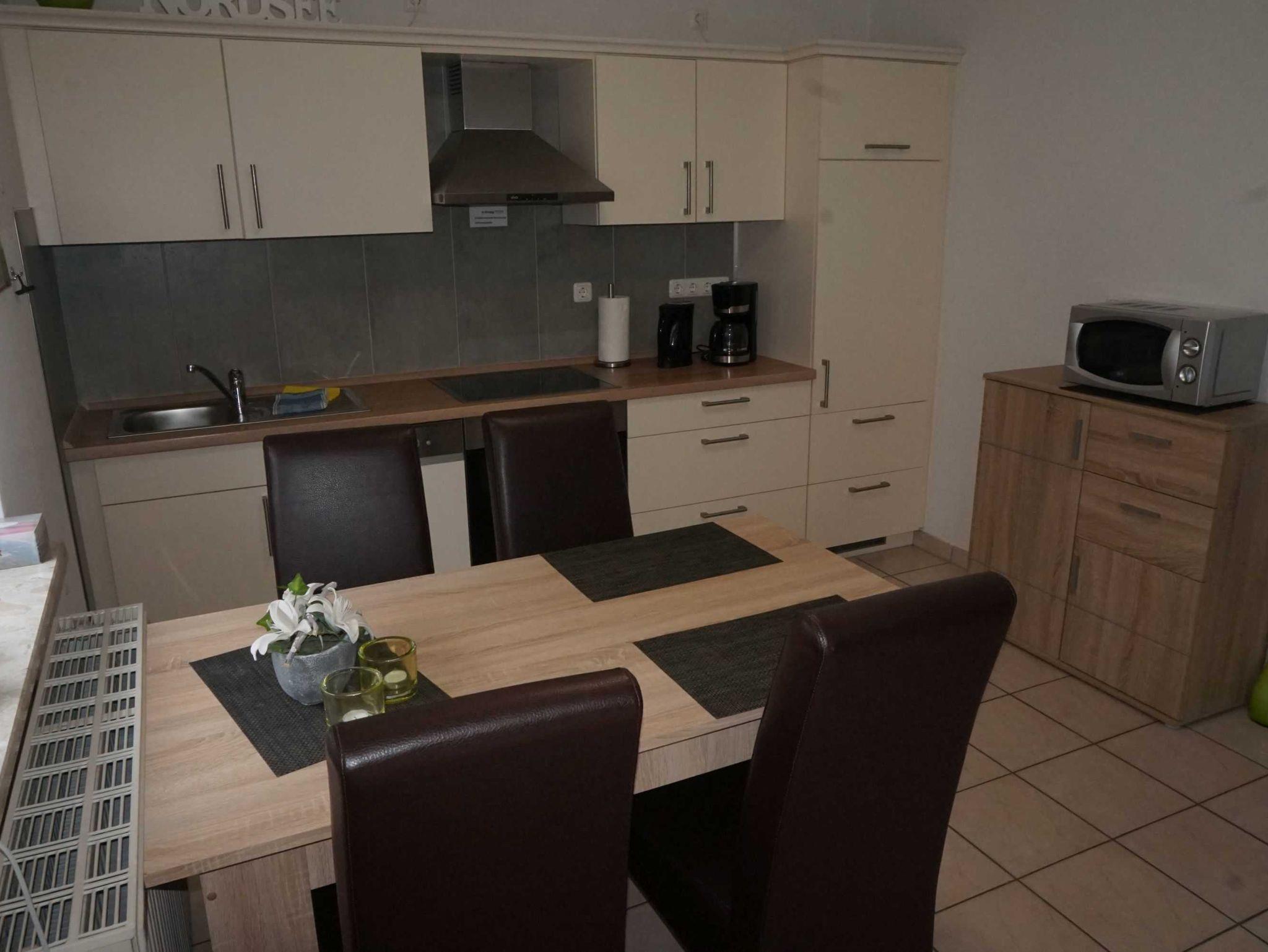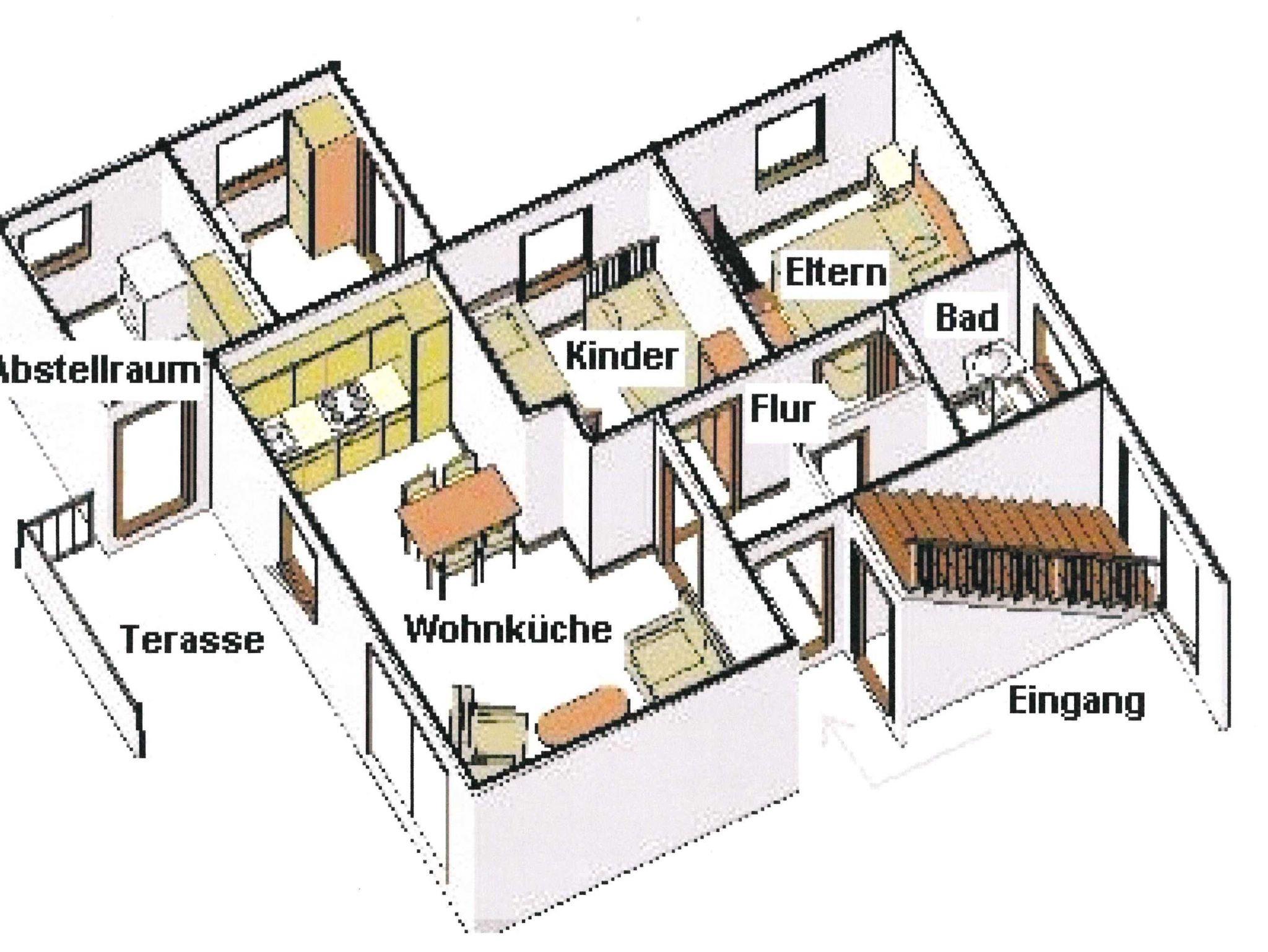 Es handelt sich um eine allergikergerechte, komplett geflieste Wohnung. Haustiere sind nicht erlaubt. Die Wohnung verfügt über eine Fläche von 53 qm plus einem Aussenabstellraum für Fahrräder mit Waschmaschine und Trockner die sie selbstverständlich nutzen können. Mittelpunkt der Wohnung ist eine großzügige Wohnküche. Hier finden Sie einen Küchenblock sowie einen Küchentisch mit Stühlen. Die Küche ist voll ausgestattet mit Toaster , Kaffeemaschine, Eierkocher , Microwelle usw. Im anderen Teil der Wohnküche befindet sich eine gemütlich eingerichtete Sitzgruppe mit Flachbild-TV. Die Wohnung verfügt über zwei Schlafzimmer, Ein Schlafzimmer mit einem 180X200 cm Bett und ein zweites Schlafzimmer mit zwei 90X200 cm Betten. Kleiderschränke sind selbstverständlich vorhanden. Ein Kinderhochstuhl und Kinderreisebett sind ebenfalls vorhanden. Für die Körperpflege steht Ihnen ein Badezimmer mit Dusche zur Verfügung. 2 PKW Stellplätze sind ebenfalls vorhanden.
