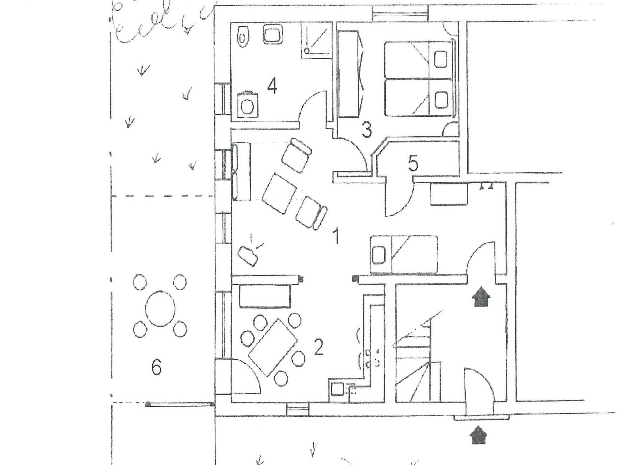 Die Ferienwohnung befindet sich im EG. Das Objekt wird vom Kutterweg aus durch einen schönen kombinierten Wohn-/Schlafraum betreten. Von hier aus gelangen Sie in die voll ausgestattete Wohnküche sowie in das separate Schlafzimmer und das geräumige Badezimmer. Vor der Küche befindet sich die möblierte Terrasse. Ein separater PKW-Stellplatz ist selbstverständlich direkt am Haus vorhanden. Zu der Ferienwohnung gehört ein Strandkorb (April bis September) am Strand von Harlesiel.
