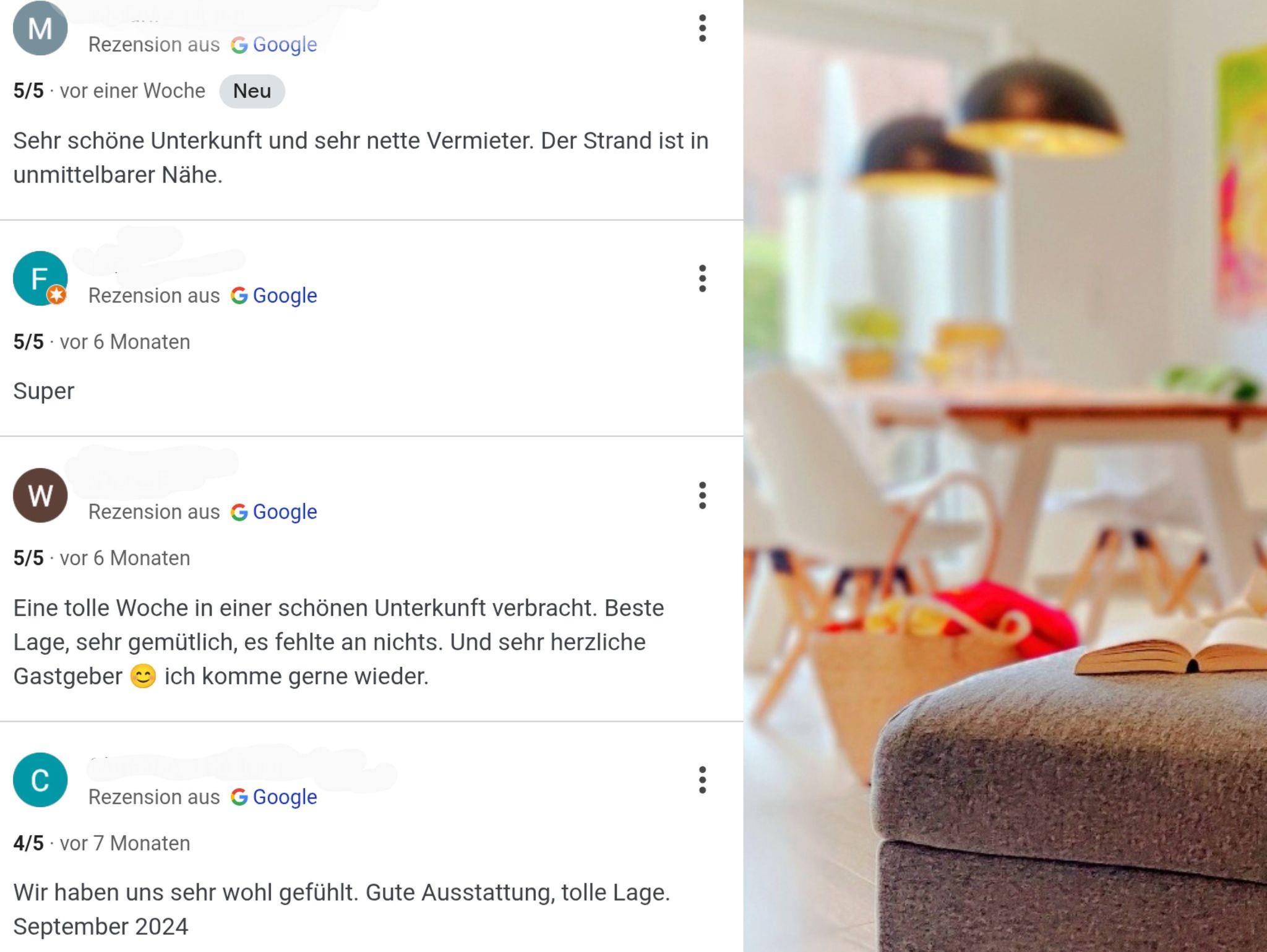 Das Haus ist sehr hell und modern eingerichtet, sowie gut ausgestattet mit einer Größe von 75 qm. Kostenfreies WLAN ist für uns selbstverständlich!
