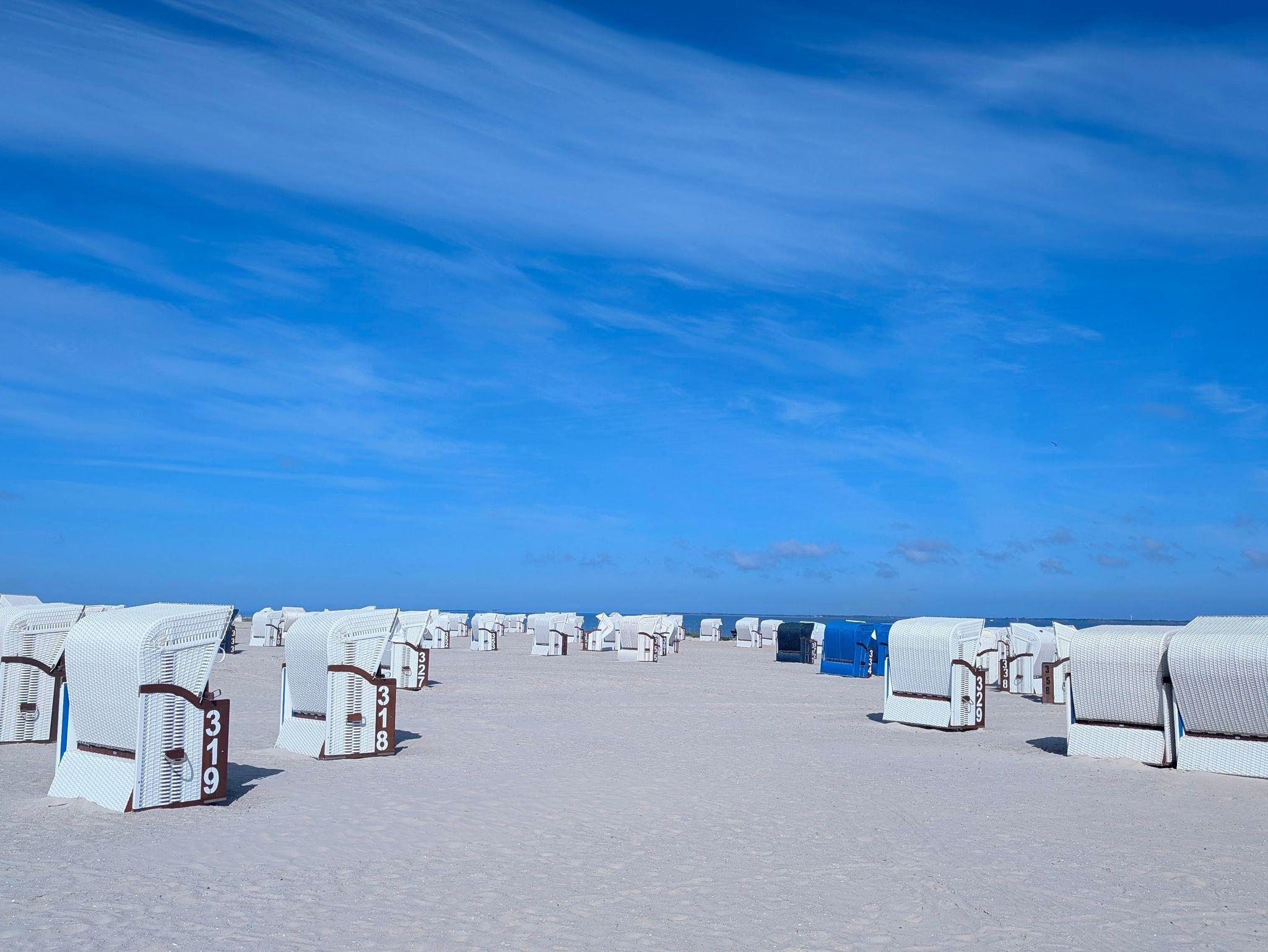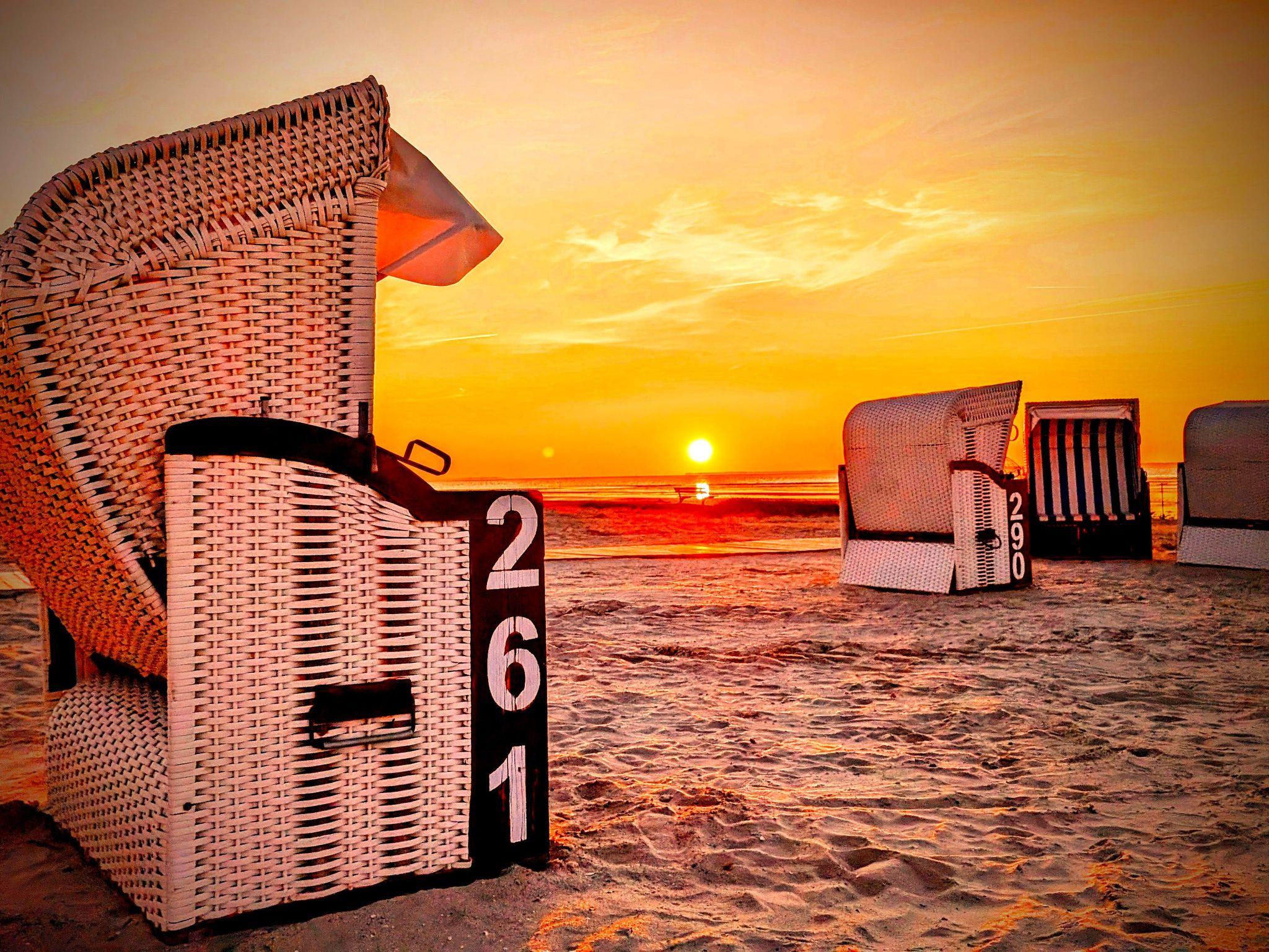 Der mit Gartenmöbeln, Sonnenliegen, Strandkorb und Grill ausgestattete Garten mit einer Terrasse in Süd-Westausrichtung lädt zum Verweilen ein.