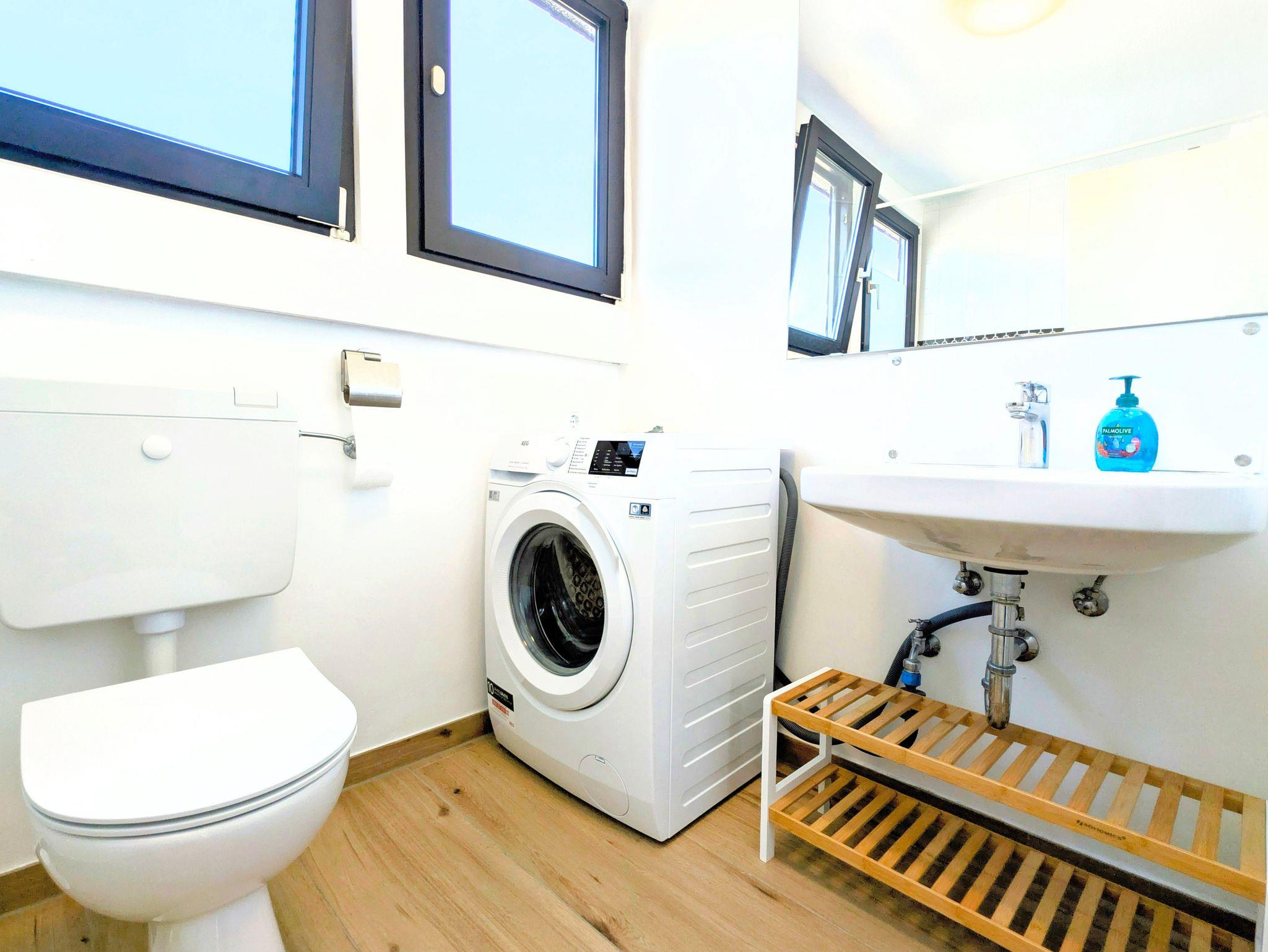 Für den Familienurlaub mit Kindern stehen ein klappbares Kinderbettchen, Kindertoilettensitz, Tritthocker für Kinder, Hochstuhl, eine Waschmaschine sowie ein Wäscheständer zum Trocknen der Wäsche zur Verfügung.