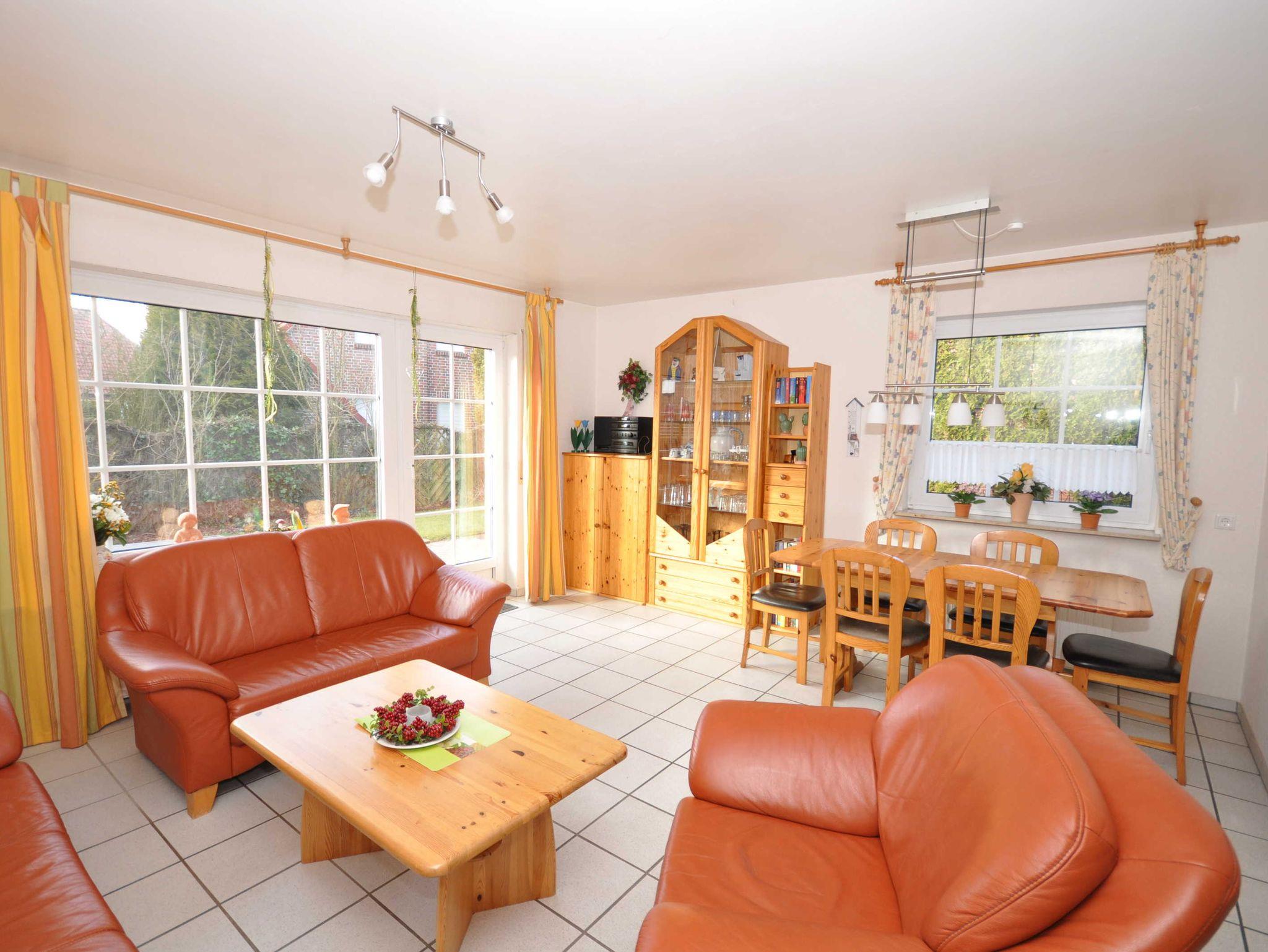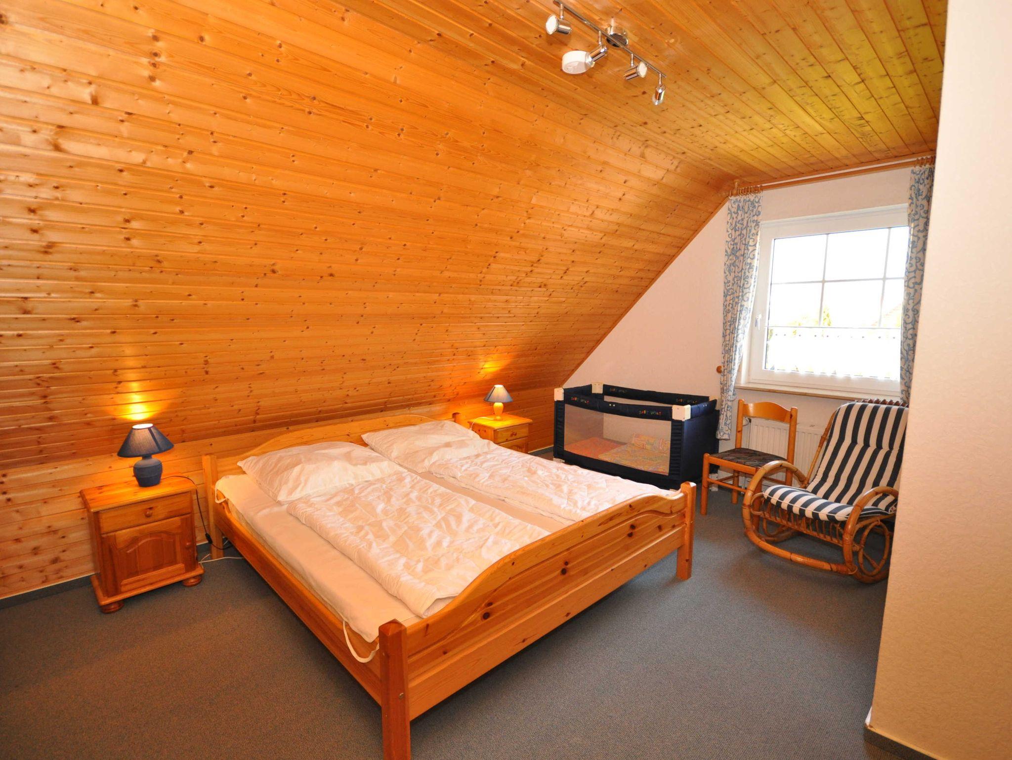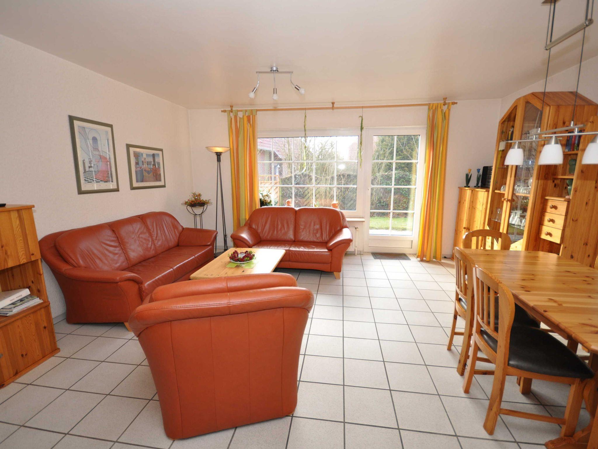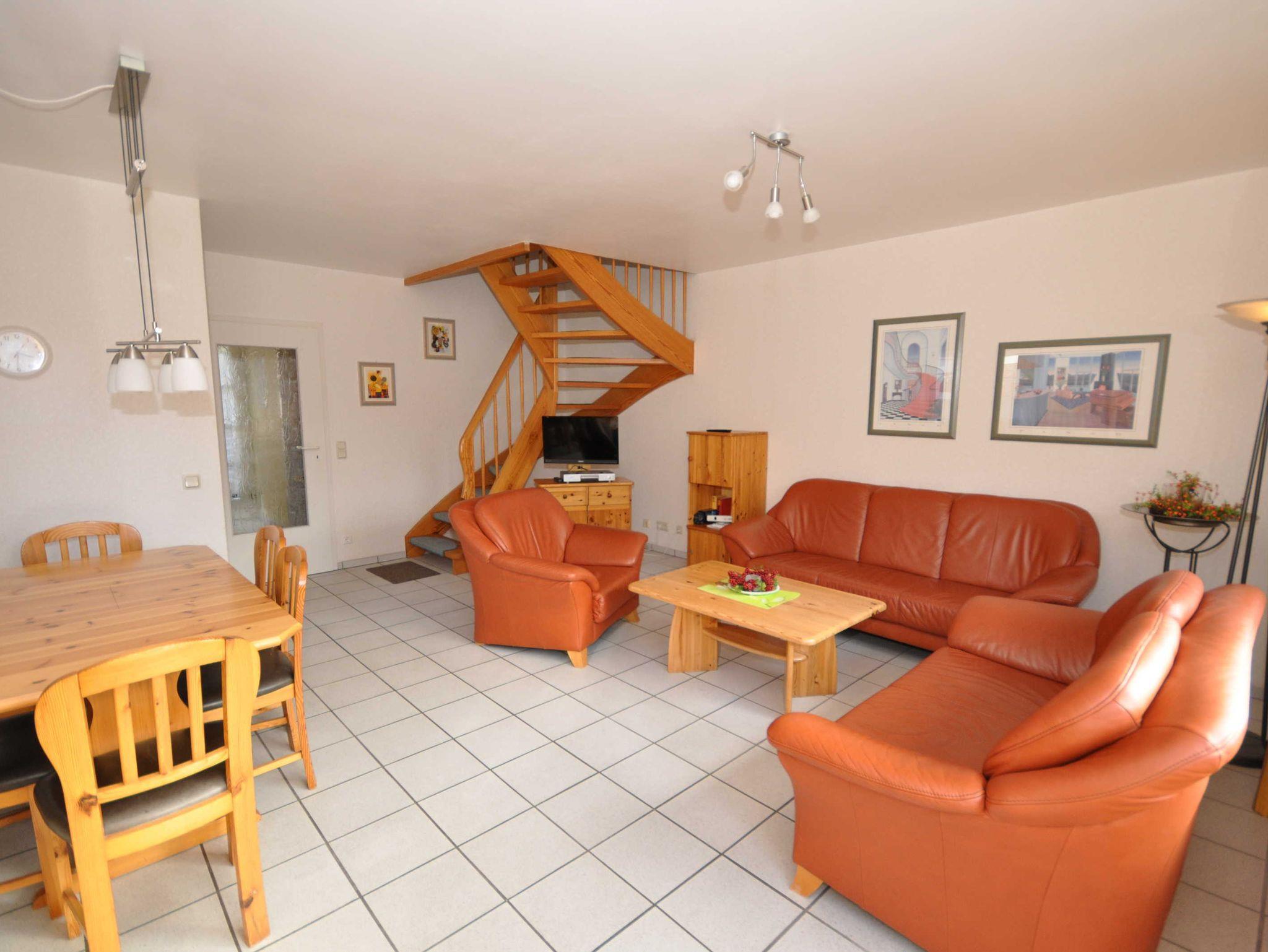 Die ca. 75m² Wohnfläche der Doppelhaushälfte bieten Platz für bis zu 4 Personen und ein Baby/Kleinkind. Im Erdgeschoss befinden sich ein großzügiger Wohnraum mit Essbereich, von wo aus auch die Terrasse und der Garten zu erreichen sind. Weiterhin verfügt das Ergeschoss über eine separate Küche und ein Duschbad mit WC. Das Obergeschoss ist in zwei Schlafzimmer (ein Schlafzimmer mit einem Doppelbett und ein Schlafzimmer mit zwei Einzelbetten) und ein 2. Bad mit Badewanne und WC aufgeteilt. Das ausgebaute, offene Dachstudio steht leider nicht zur Nutzung zur Verfügung. Alle Fenster sind mit Rollläden, die Böden im Erdgeschoss mit Fließen ausgestattet.