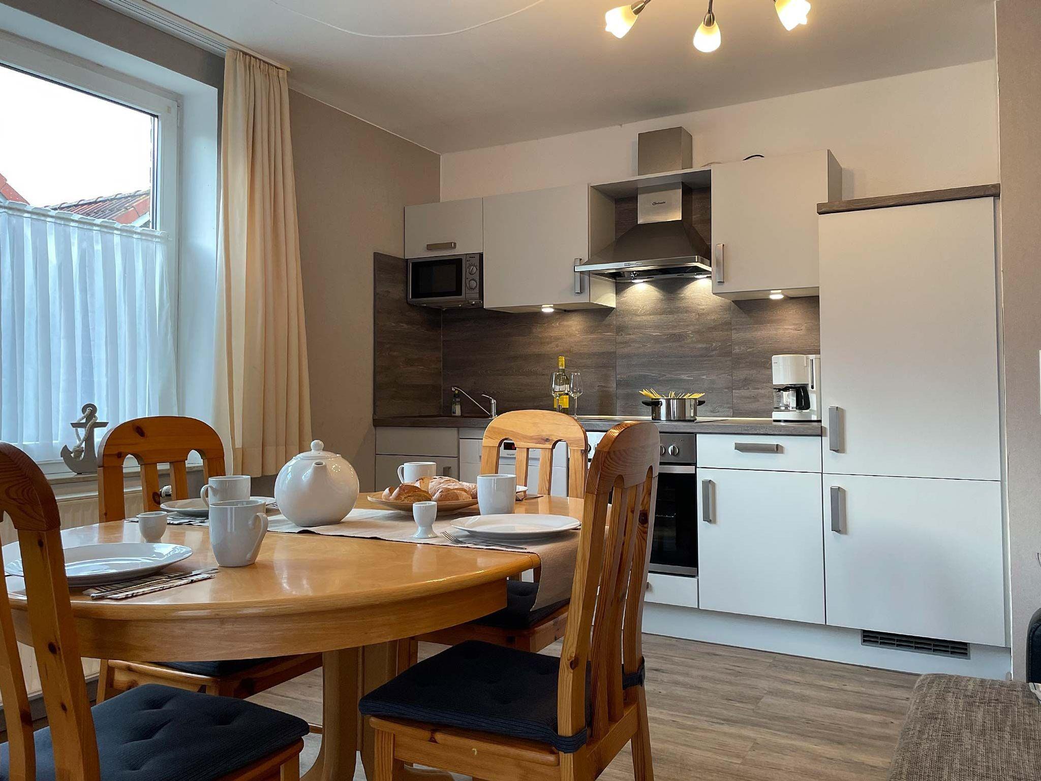 Moderne, sehr geschmackvoll und hochwertig eingerichtete Ferienwohnung in bester Lage des Nordseebades Carolinensiel für bis zu 4 Personen und 1 Kleinkind mit Terrasse. Die modern und voll eingerichtete Wohnung liegt im Erdgeschoss unseres Hauses ?Mühlenblick? und verfügt über ein helles Wohnzimmer mit Sofalandschaft und großem SAT-TV, Essbereich sowie gut ausgestatteter Küche (mit Mikrowelle und Spülmaschine). Weiterhin finden Sie in der Wohnung zwei Schlafzimmer und ein hell und modern ausgestattetes Duschbad. Vom Wohnzimmer aus haben Sie die Zugang zur Terrasse. Ein Kinderbett und Hochstuhl stehen unseren Gästen selbstverständlich zur Verfügung.