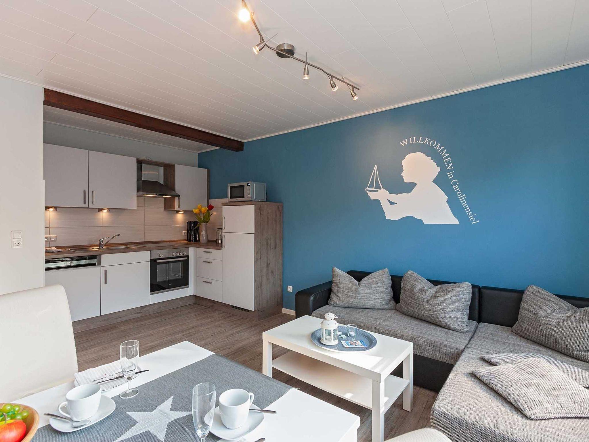 Die Ferienwohnung verfügt über 1 separates Schlafzimmer, kombinierter Wohnraum mit Schlafsofa und einer voll ausgestatteten Küche mit Geschirrspüler. Badezimmer mit Dusche/WC und einer Überkopf-Regendusche. Alle Wohnungen verfügen über einen 49 Zoll-Smart-TV im Wohnbereich und einen zusätzlichen Smart-TV im Schlafzimmer. W-Lan, Nichtraucher, allergikergeeignet.
