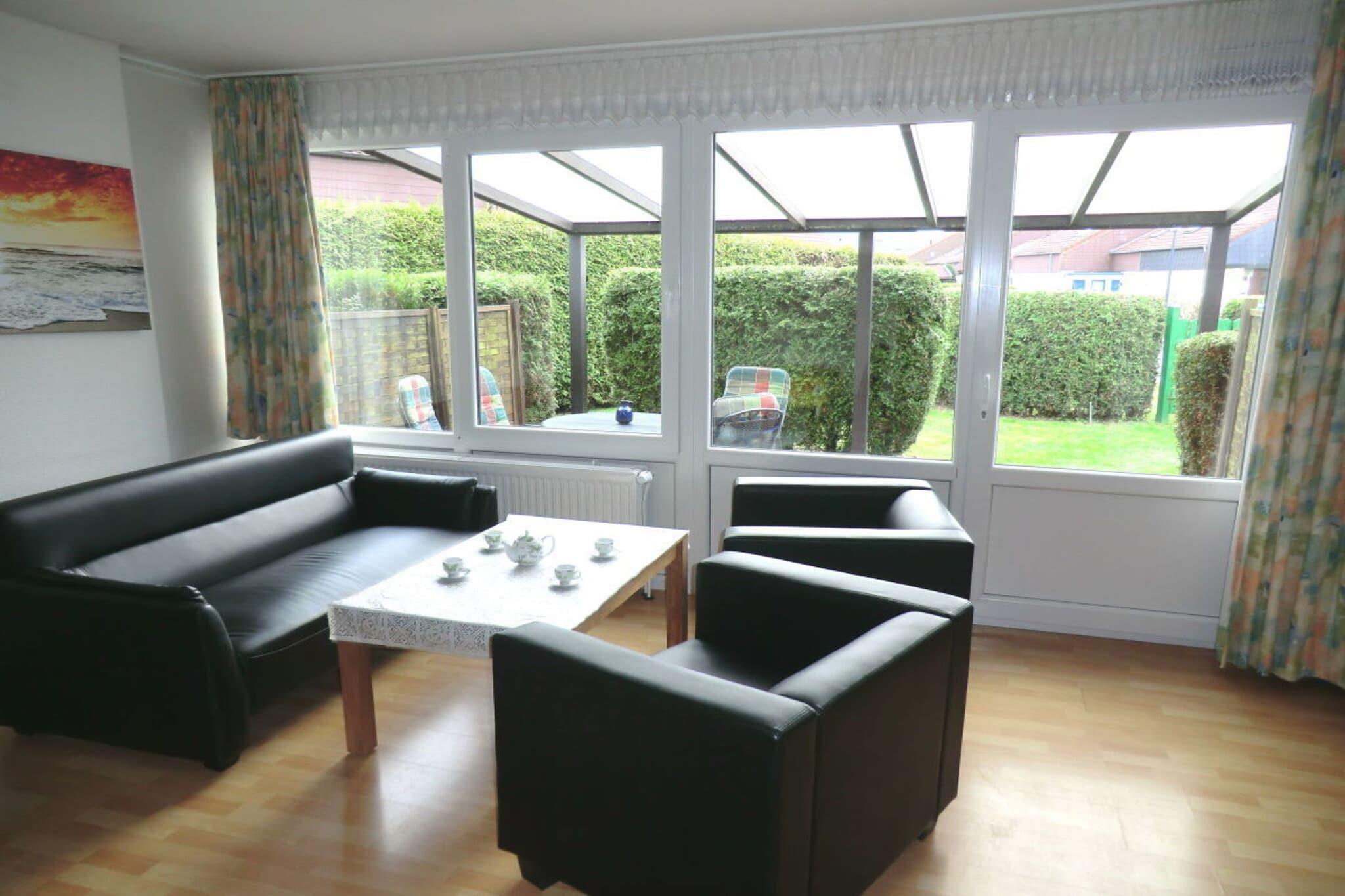 Stueetage: (Køkken(kogeplade, elkedel, brødrister, kaffemaskine, ovn, mikrobølgeovn, opvaskemaskine , køleskab, fryser), stue / spisestue(Fjernsyn, spisebord, radio), soveværelse(dobbeltseng), soveværelse(enkeltseng, enkeltseng), badeværelse(bruser, håndvask, toilet, vaskemaskine)) terrasse, have, havemøbler