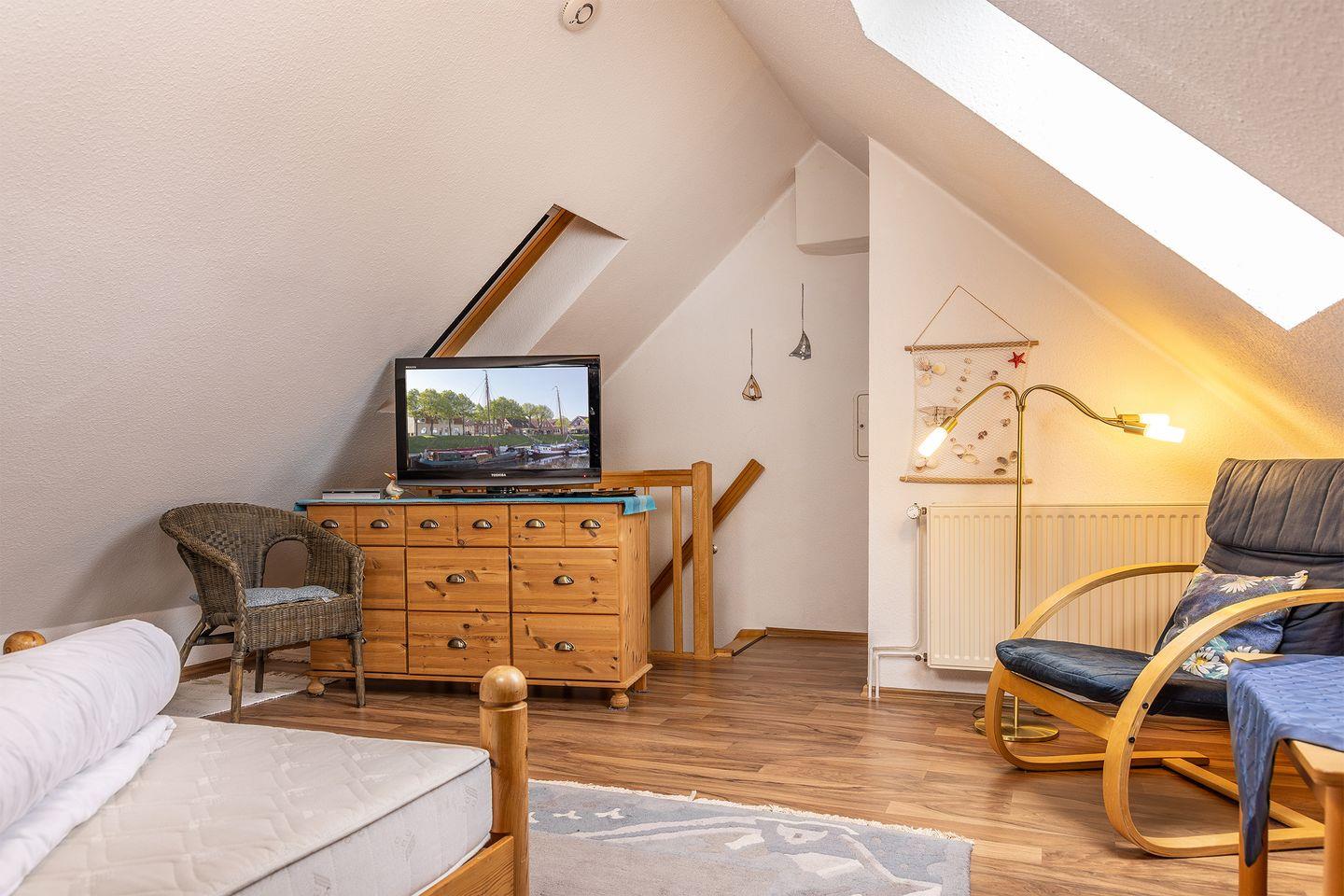 Ferienwohnung „Svenja“: Helle Obergeschosswohnung mit sonnigem Balkon in ruhiger Lage. Kurzentrum, Ortskern und Museumshafen sind fußläufig erreichbar. Ideal für Erholungssuchende, die Ruhe, Meer und maritimes Flair genießen möchten.