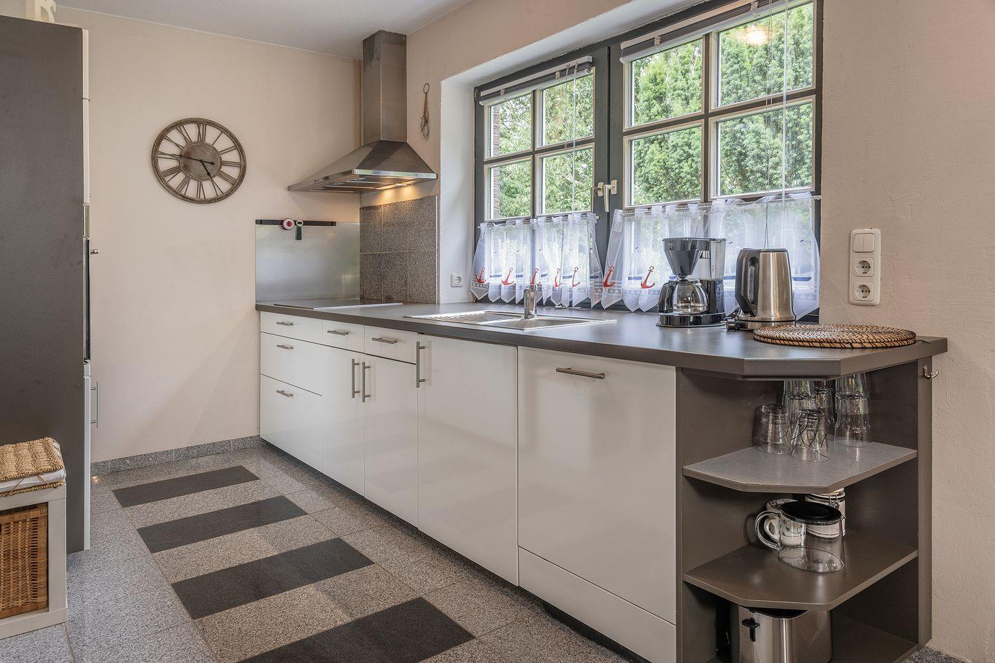 Offene Küche ( Durchgang zum Wohnzimmer) mit Spülmaschine, Backofen, Mikrowelle etc.,