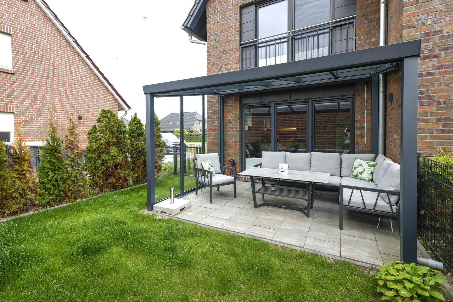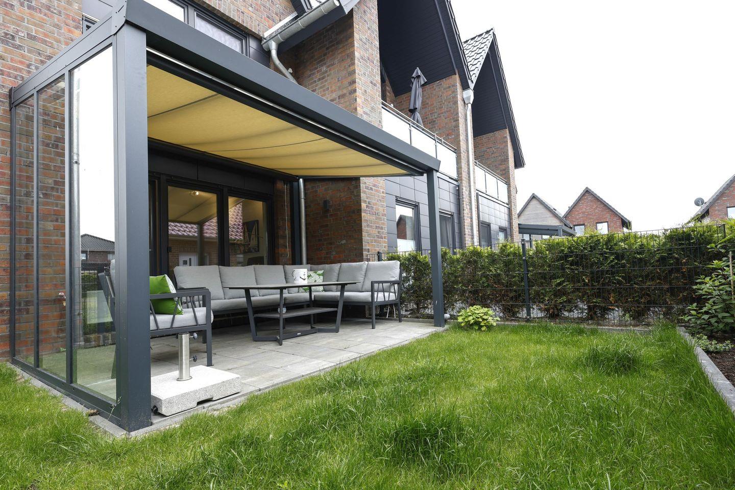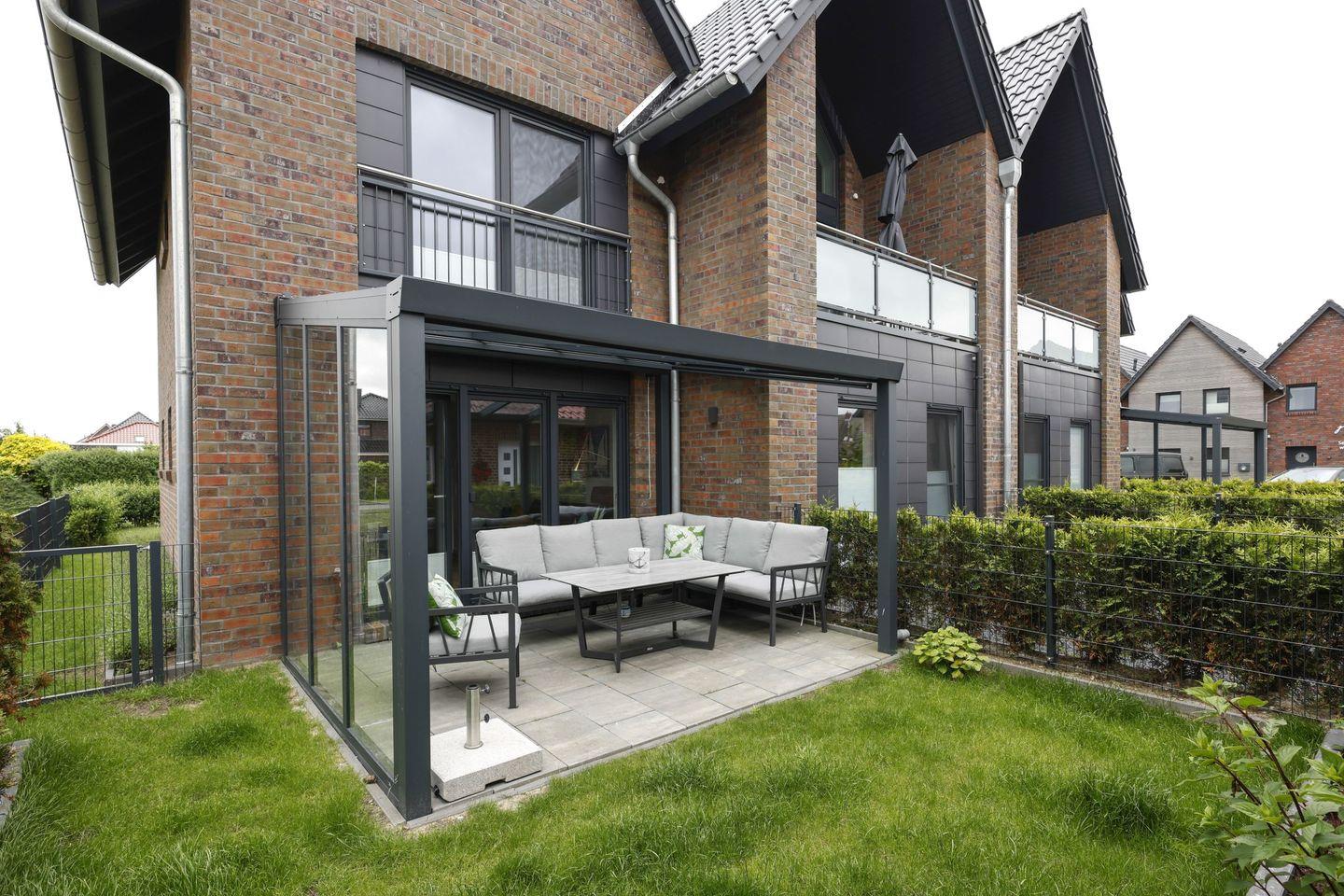 Für kulinarische Köstlichkeiten sorgt die hochwertige offene Küche, die mit einem Ceran-Herd, Backofen, Spülmaschine und Kühlschrank ausgestattet ist. Hier können Sie Ihre Lieblingsgerichte zubereiten und auf der überdachten Terrasse im Garten genießen. In der gepflegten Außenanlage mit Gartenmöbeln lässt es sich wunderbar entspannen. Ein Kohlegrill steht bereit, um die Grillabende mit Familie oder Freunden zu einem ganz besonderen Erlebnis zu machen.