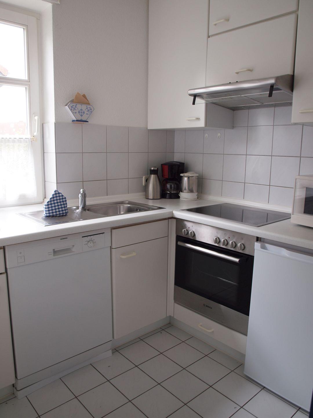 Die separate, geschlossene Küche ist mit modernen Geräten ausgestattet, darunter ein Ceranherd, ein Backofen sowie eine Spülmaschine. Auch eine Mikrowelle und eine Kaffeemaschine stehen Ihnen zur Verfügung. An Küchenutensilien, Geschirr und Besteck mangelt es ebenfalls nicht, sodass Sie problemlos Ihre eigenen Mahlzeiten zubereiten können.