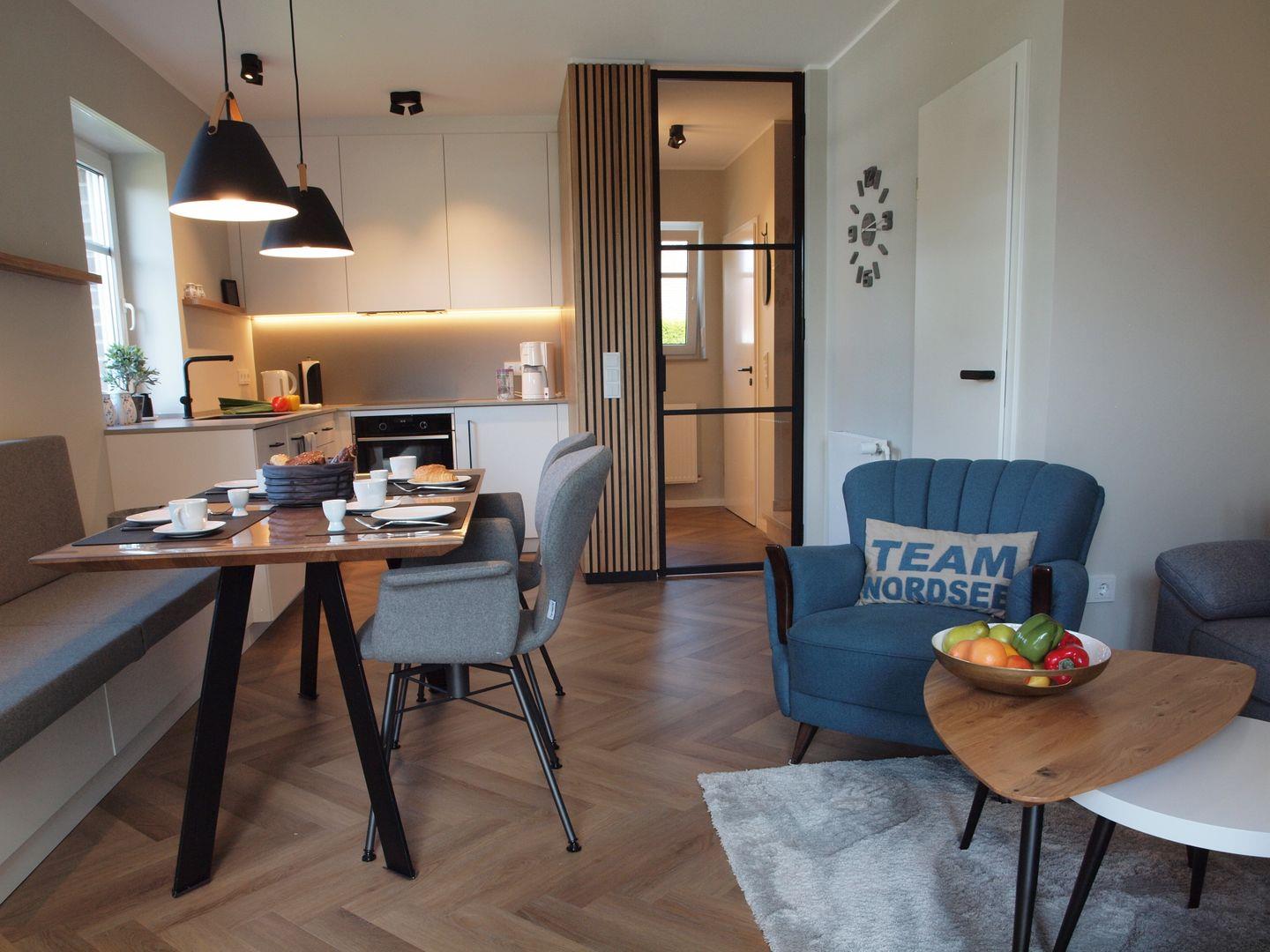 Haus "Caro 53° Nord" haben wir Anfang 2022 vollständig renoviert und modern eingerichtet. Auf 70 Quadratmetern finden vier Gäste Platz, sich in ihren Ferien zu entfalten: Wohn- und Esszimmer im Erdgeschoss, die moderne Küche indessen ist vollständig ausgestattet und integraler Bestand der gemeinsamen Räume. Von hier aus geht's nahtlos auf die Terrasse und in den sonnigen Garten – so verbringen alle ihre Urlaubszeit zwar miteinander und doch kann jeder seiner Lieblingssache nachgehen!