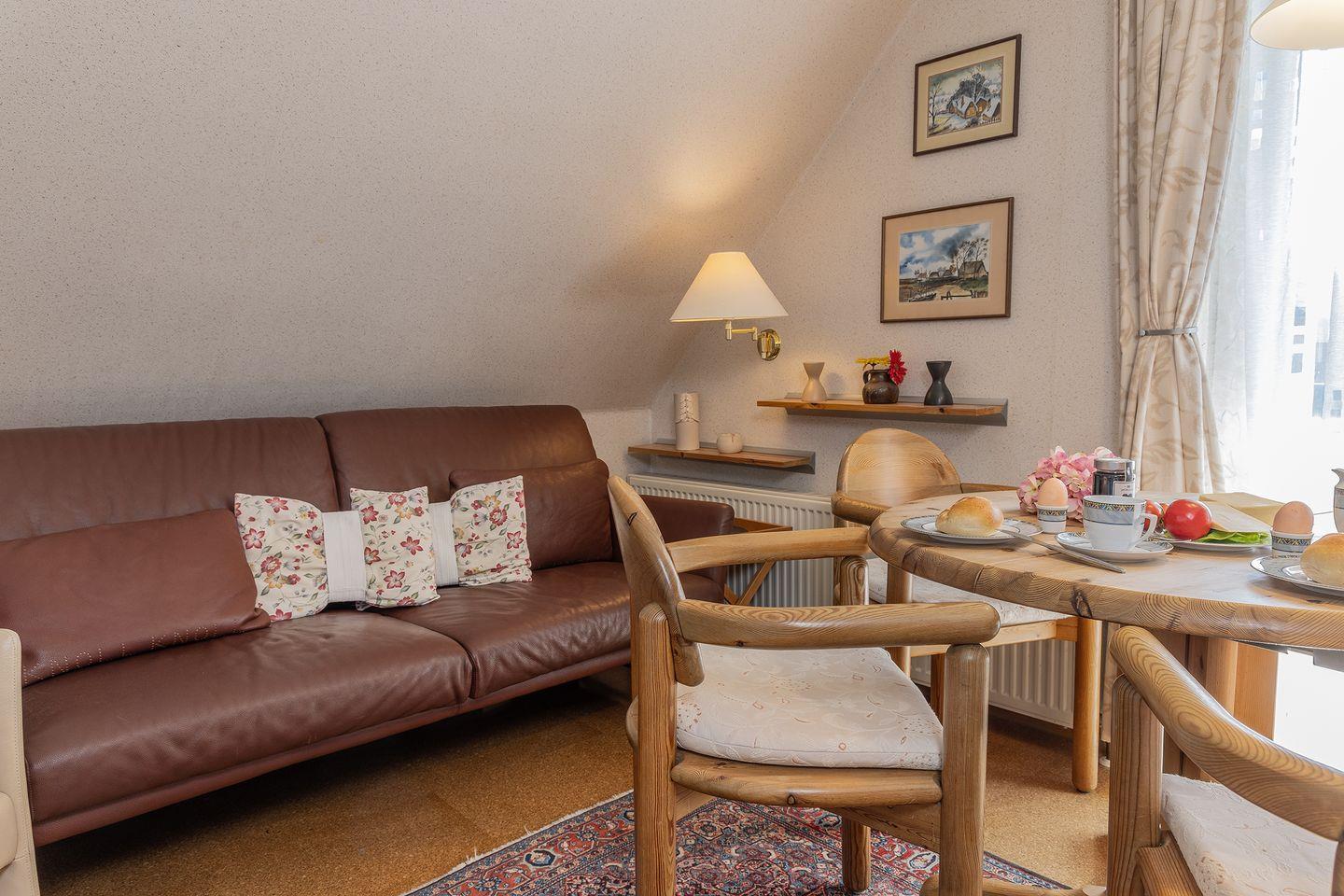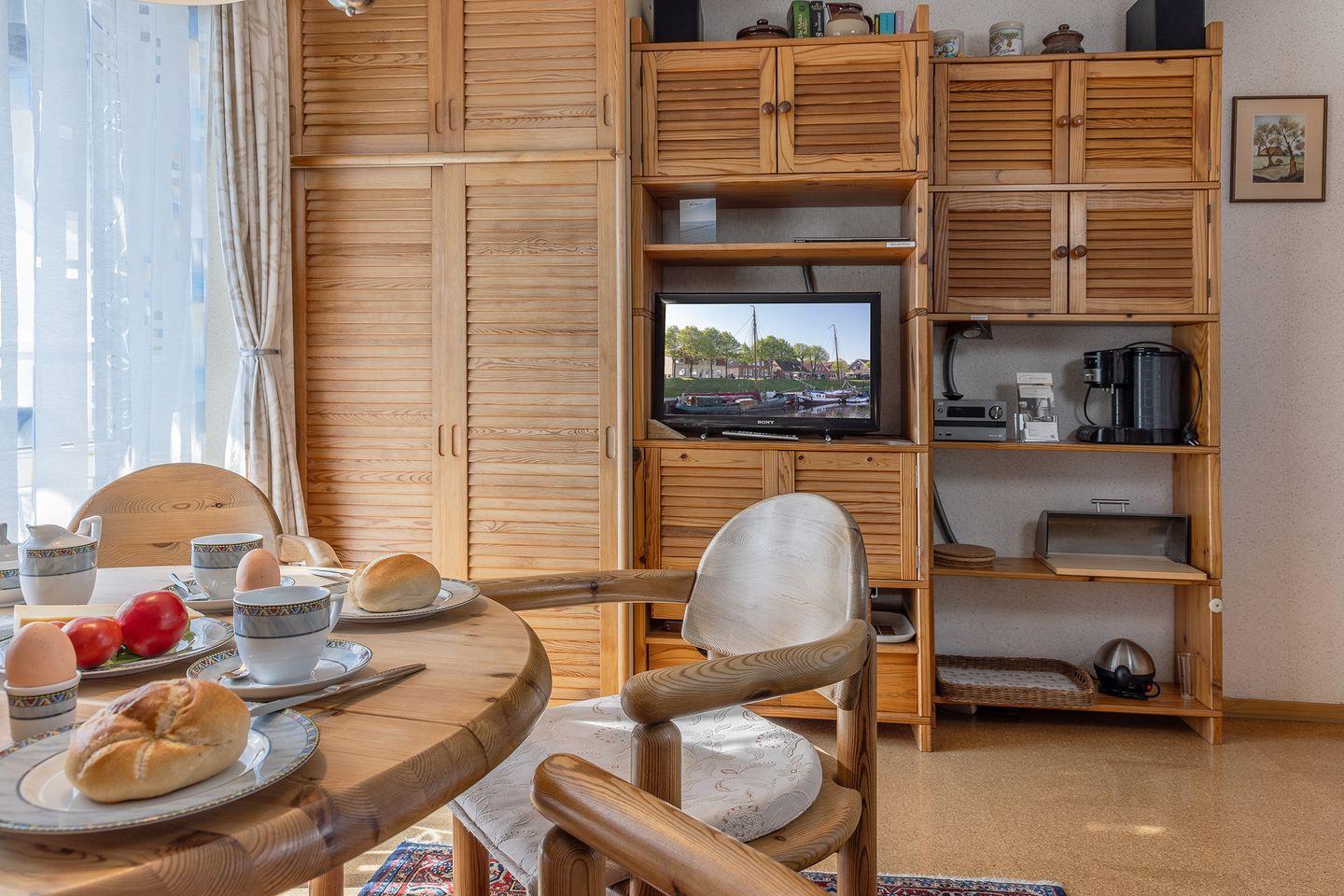 Ein gemütliches Wohn- / Esszimmer mit Sat-TV, Videorecorder, Stereoanlage mit CD- und DVD-Spieler, Gesellschaftsspielen und vielem mehr bietet Ihnen gute Möglichkeiten zur Entspannung.
