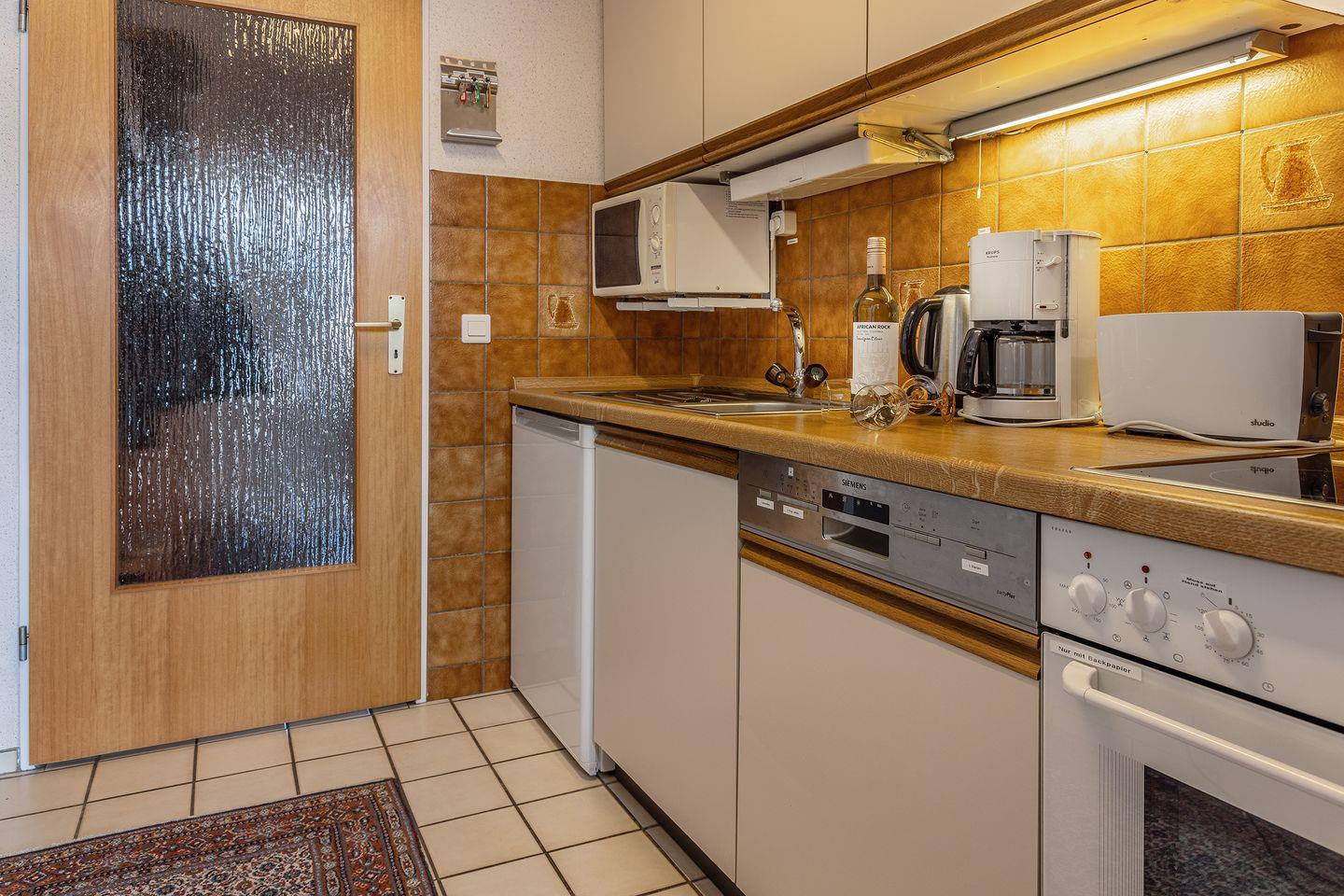 Die Küche ist vollausgestattet mit einem Kühlschrank, Mikrowelle, Geschirrspüler etc.