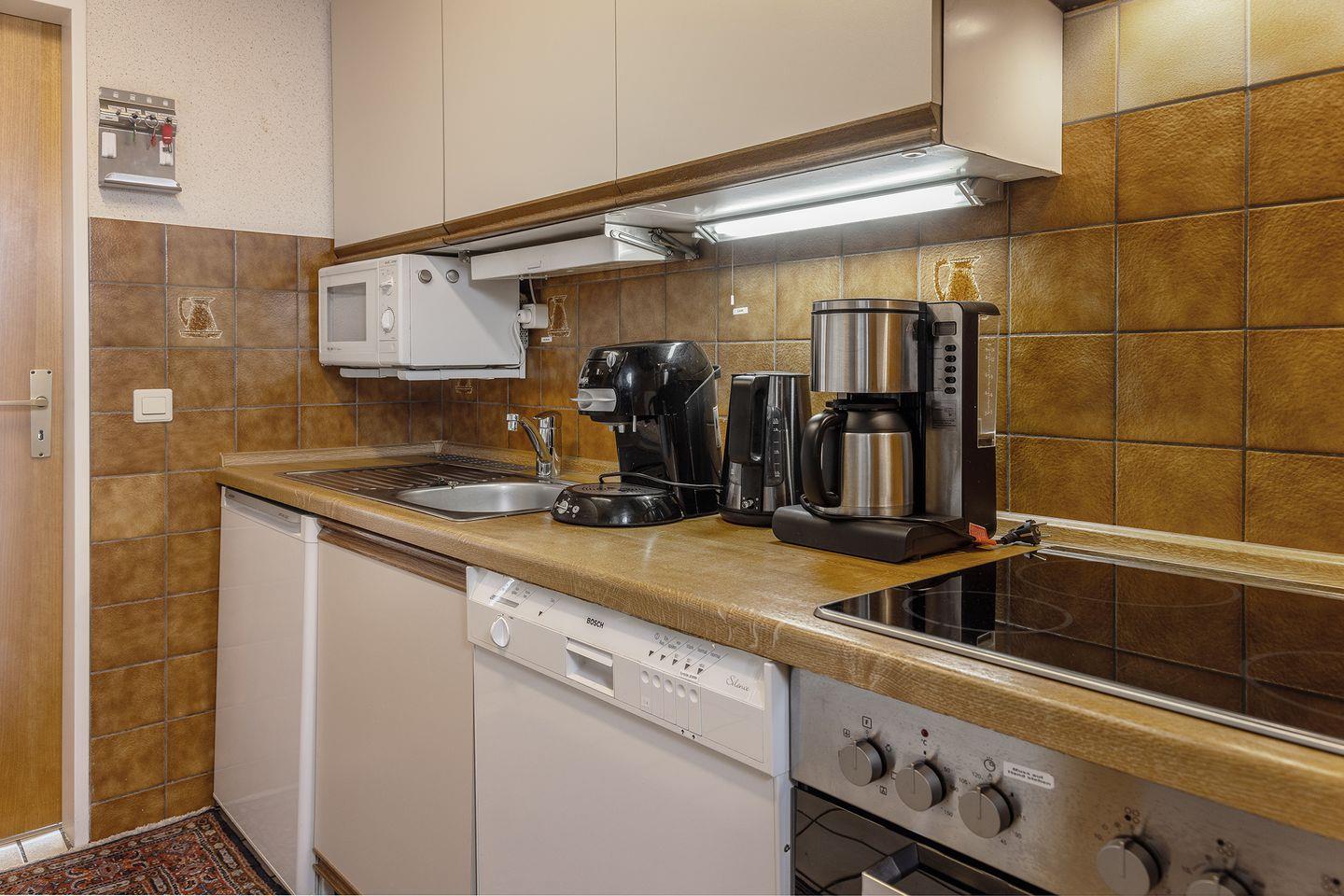 Die Küche ist vollausgestattet mit einem Kühlschrank, Mikrowelle, Geschirrspüler etc.