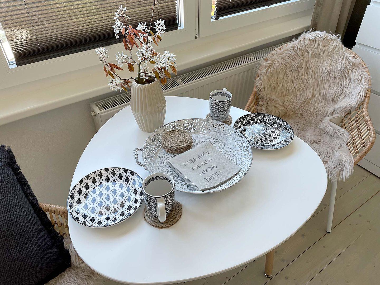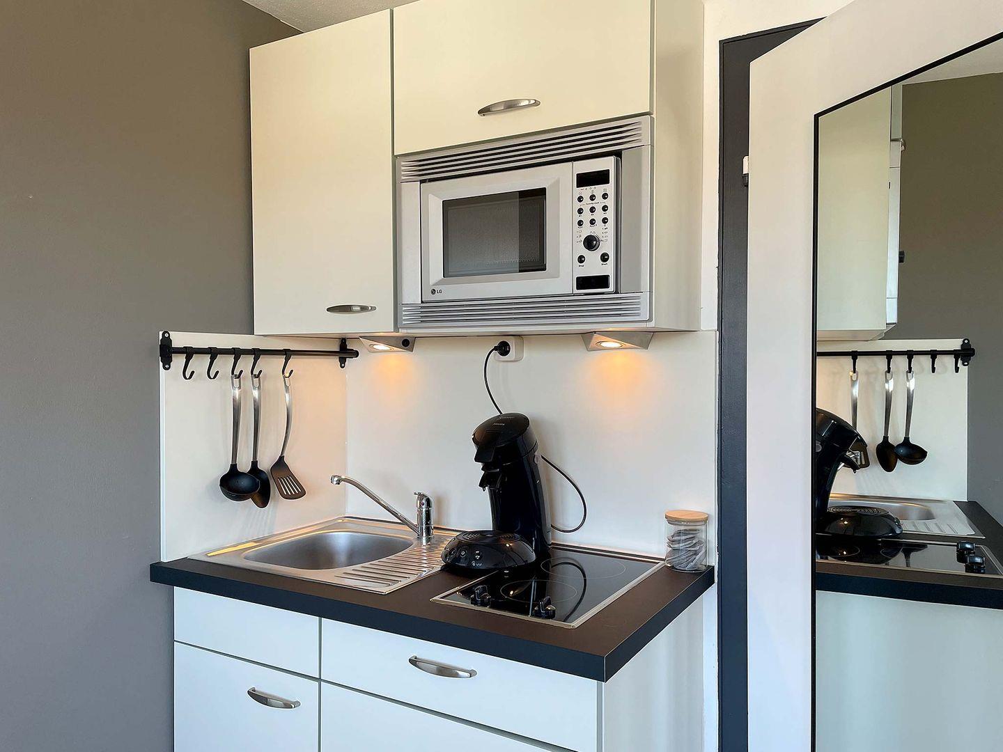 Kuscheliges Apartment für max. 2 Personen mit bequemen Doppelbett und Sitz-/Essplatz direkt am Fenster. Zum Frühstück und den kleinen Hunger zwischendurch bietet die kleine Küchenecke Senseo-Kaffeemaschine, einen 2-Platten-Herd, Mikrowelle und Kühlschrank. Im modernen Bad mit Fenster finden Sie WC, Waschbecken und Dusche