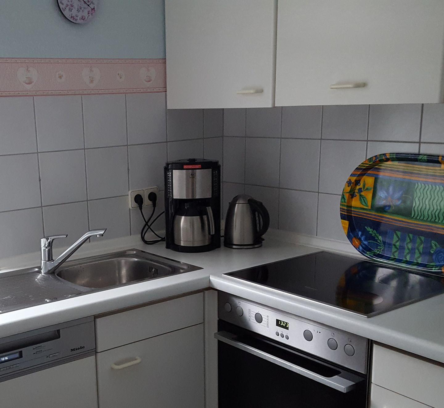 In der voll ausgestatteten, geschlossenen Küche macht das gemeinsame Kochen Freude. Der helle Wohnbereich lädt zum Entspannen ein, ausgestattet mit zwei Fernsehern und kostenfreiem WLAN.