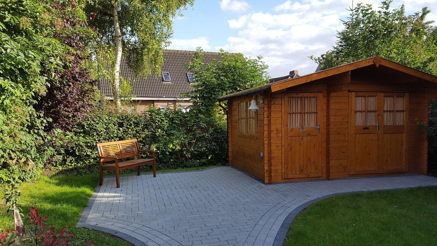 An sonnigen Tagen genießen Sie den großzügigen Garten mit Liegewiese, Terrasse und Grillmöglichkeiten – ideal für entspannte Stunden im Freien. Ein eigener Parkplatz rundet das Angebot ab.