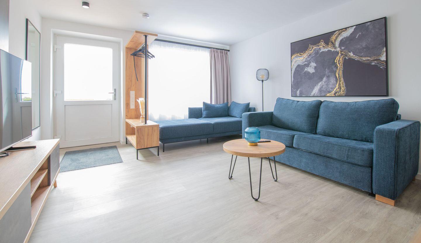 Die geschmackvoll eingerichtete offene Küche und das großzügige Wohnzimmer laden zum Entspannen und Verweilen ein. Auf der Terrasse oder dem Balkon können Sie die frische Nordseeluft genießen und in idyllischer Umgebung entspannen.