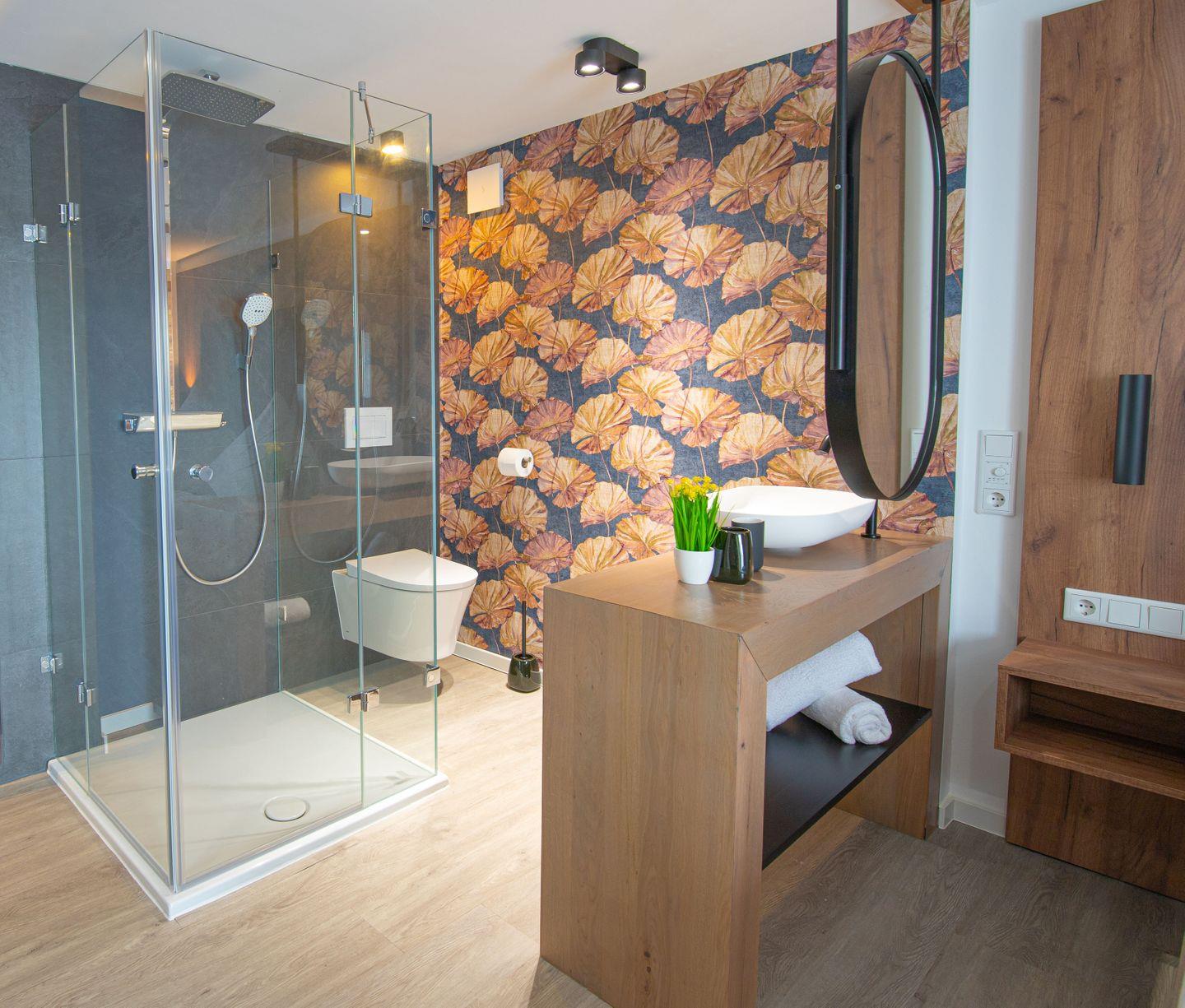 Willkommen in unserer besonderen Ferienwohnung in Carolinensiel! Diese Unterkunft besticht durch ein offenes und modernes Designkonzept, bei dem das Bad im Schlafzimmer integriert ist. Genießen Sie den Komfort und die Annehmlichkeiten eines hochwertigen Badezimmers, während Sie direkt vom Schlafzimmer aus, einen Blick auf die umliegende Landschaft werfen können.