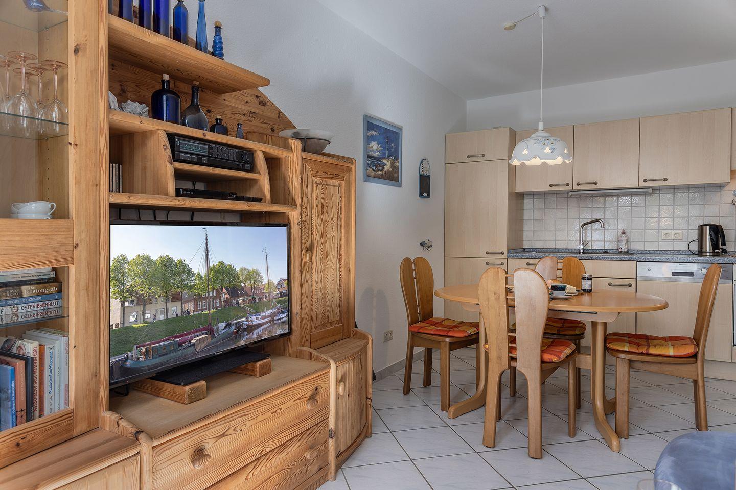 Gemütliche Erdgeschosswohnung direkt an der Harle – nur wenige Gehminuten vom Hafen und Ortskern entfernt. Mit Terrasse, Garten, zwei Schlafzimmern – ideal für Familien und Paare.