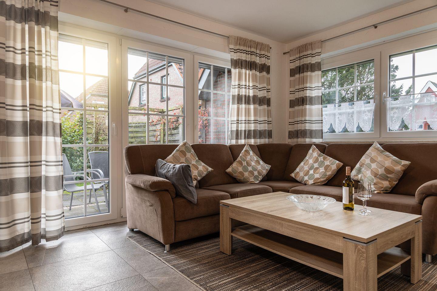 Modern und ruhig: Die neuzeitlich eingerichtete Ferienunterkunft von ca. 60 qm liegt gleich hinter dem Deich. Ein offener Kamin sorgt mit dem Knister-Effekt an kühlen Abenden für Behaglichkeit und wohltuende Wärme.