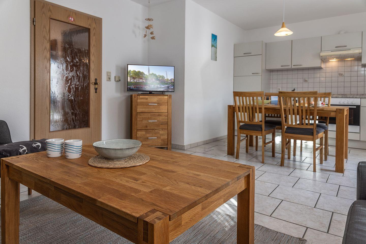Helles, freundliches Wohnzimmer mit Radio, TV