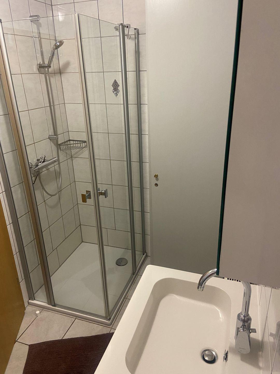 Bad mit Dusche und WC, Abstellraum, Waschmaschine