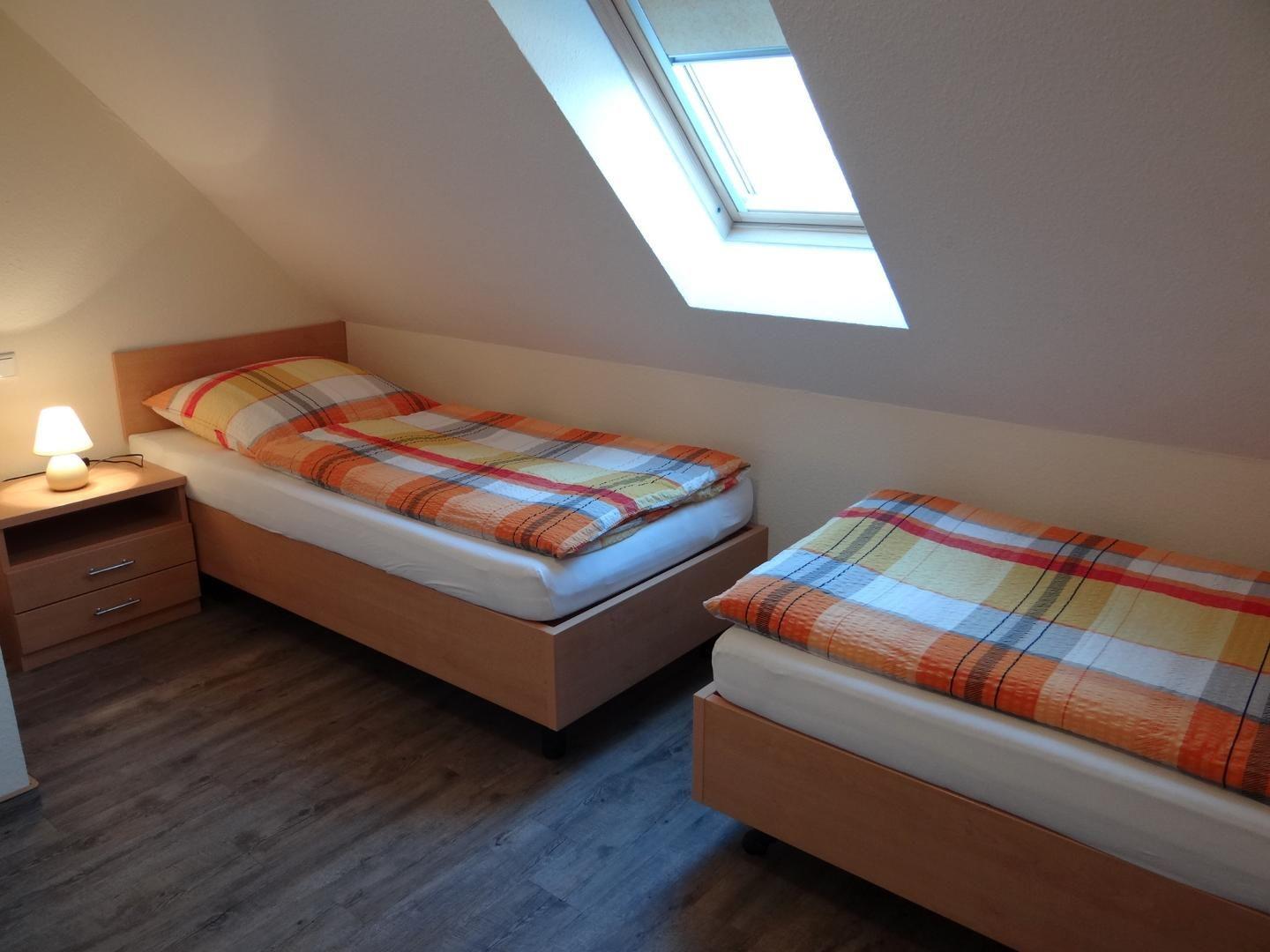 1 Schlafzimmer mit Doppelbett, 1 Schlafzimmer mit 2 Einzelbetten, zustellbares Kinderbett, Latexmatratzen, Bad mit Dusche.