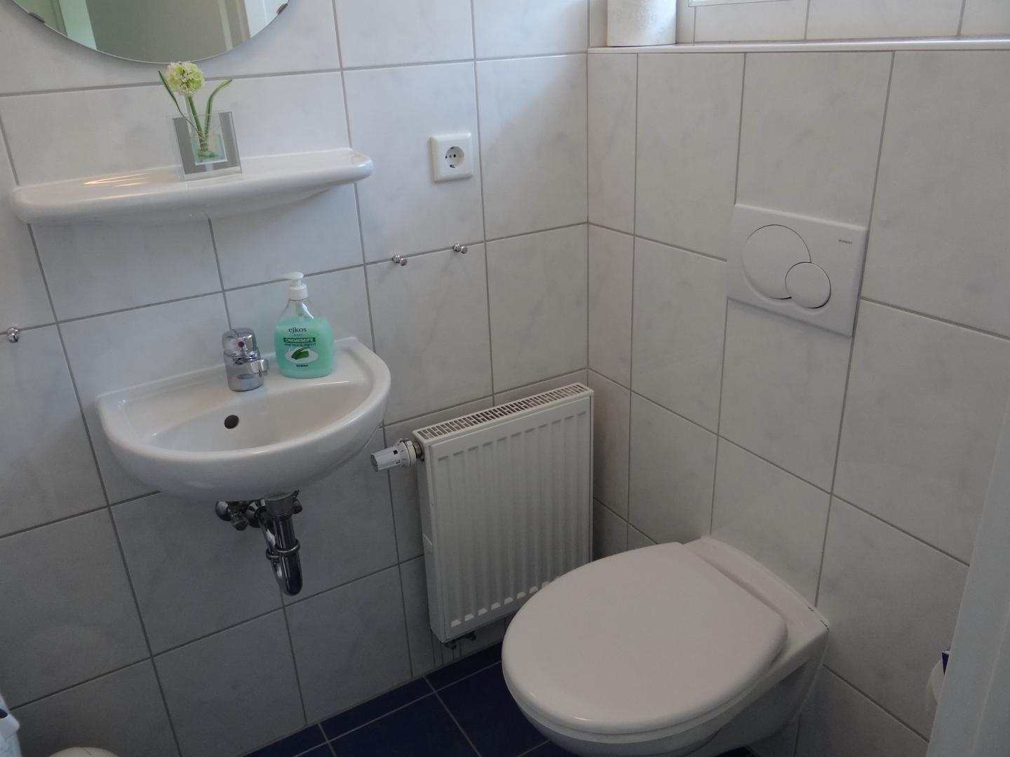 Wohn-/Essbereich mit Sat- TV, Stereoanlage, Küche, Kinderhochstuhl, Gäste- WC, Waschmaschine/ Trockner, Abstellraum, Terrasse mit Garten in West-Lage und Gartenmöbel.