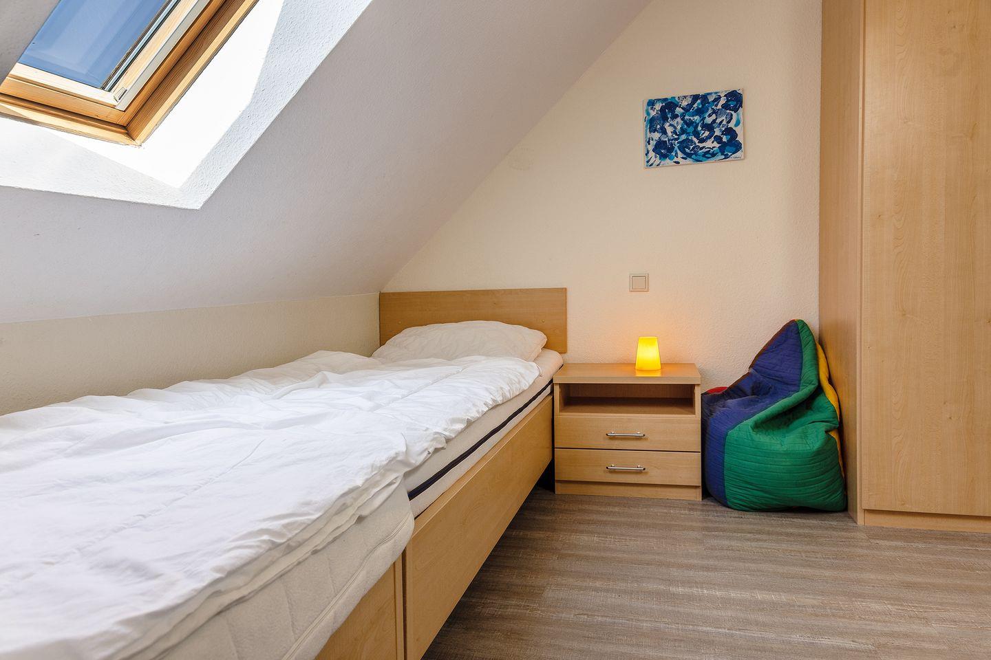 1 Schlafzimmer mit Doppelbett, 1 Schlafzimmer mit 2 Einzelbetten, zustellbares Kinderbett, Latexmatratzen, allergikerfreundliches Bettzeug, Bad mit Dusche.