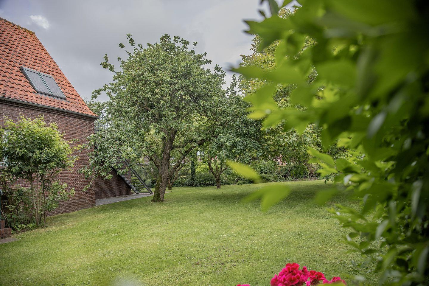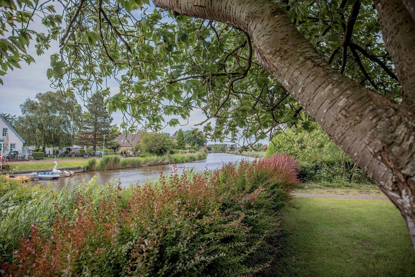 Idyllisches Domizil direkt an der Harle: Großzügiges Ferienhaus für 8 Personen + Kleinkind mit vier Schlafzimmern, zwei Bädern und großem Gartengrundstück unter altem Baumbestand. Ruhe, Platz und Komfort – nur 300 m vom Zentrum entfernt.