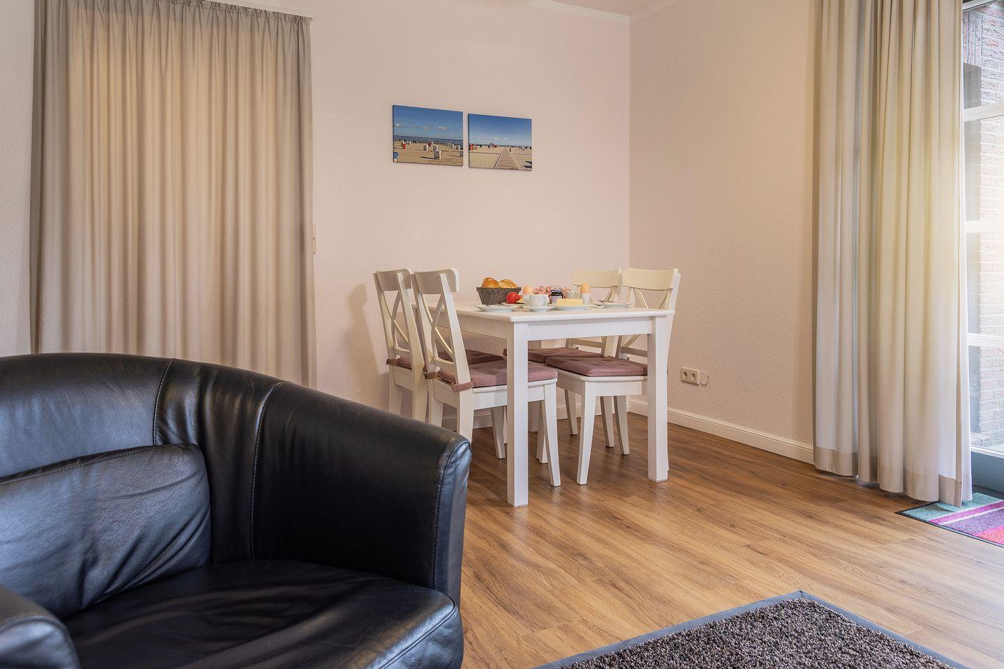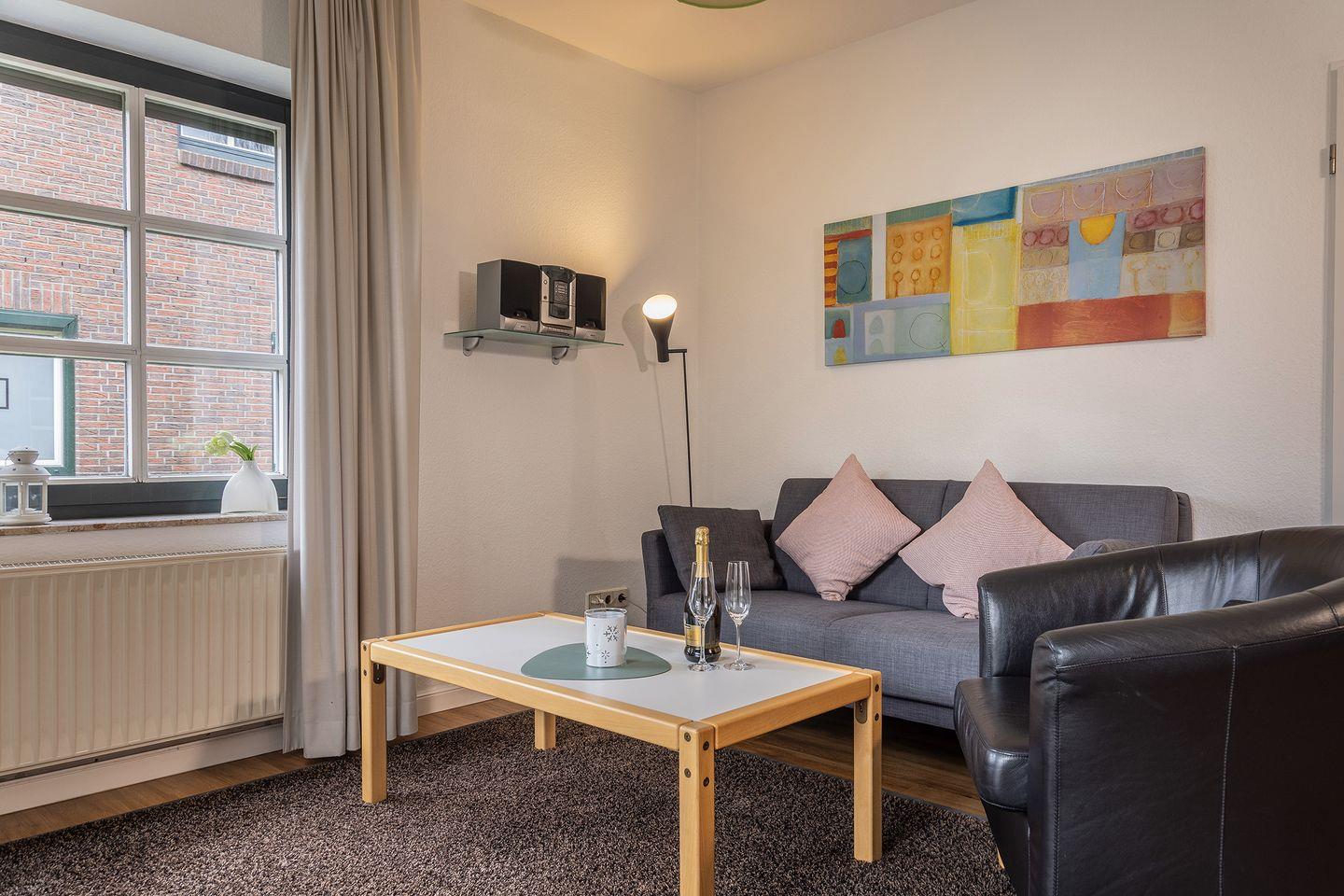 Helles, freundliches Wohnzimmer mit CD-Radio, Sat-TV, Zugang zur windgeschützten Terrasse mit großem Garten.