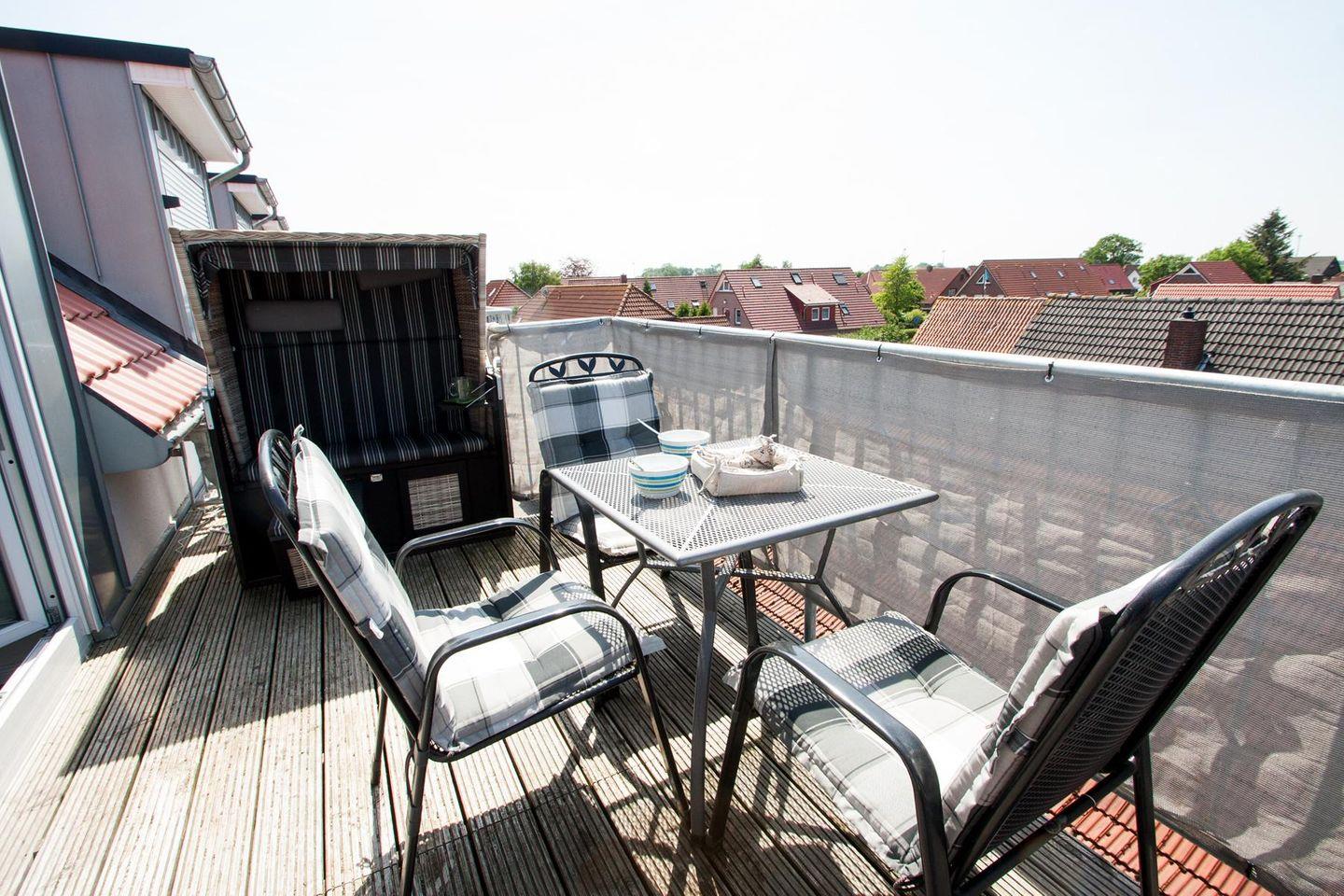 Neuzeitlich und modern: Die helle Wohlfühl- Obergeschoss-Maisonette- Wohnung (Neubau, bezugsfertig seid 04-2017) bietet Platz für 4 Personen und 1 Kleinkind. Auf dem kleinen, kuscheligen Balkon mit Strandkorb macht das Sonnenbaden richtig Spaß.