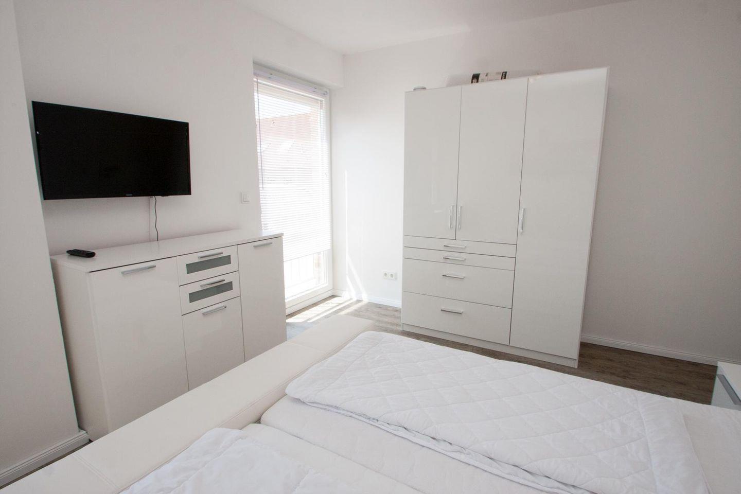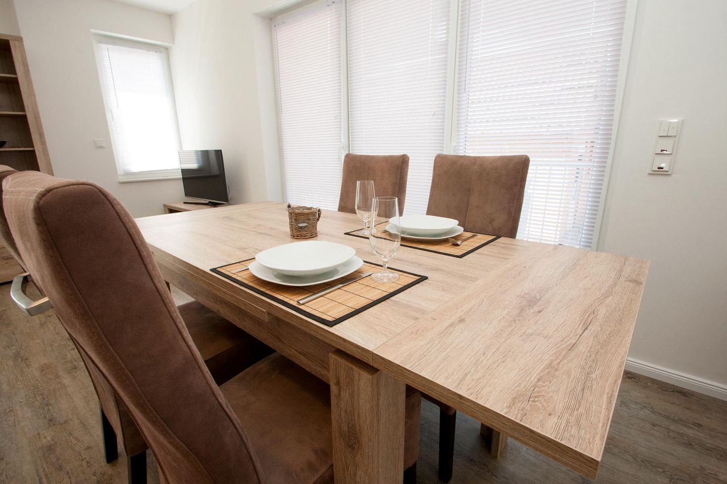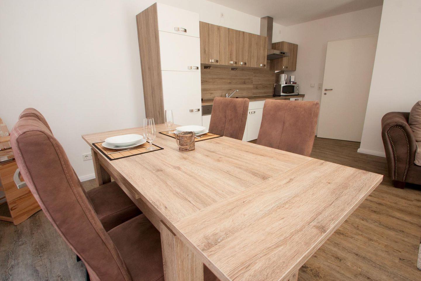 Hell und freundlich: Diese modern eingerichtete Erdgeschosswohnung bietet auf ca. 59 qm Quartier für 4 Erwachsene und 1 Kleinkind. Lassen Sie sich das Frühstück auf dem sonnenverwöhnten Süd-West-Balkon schmecken.