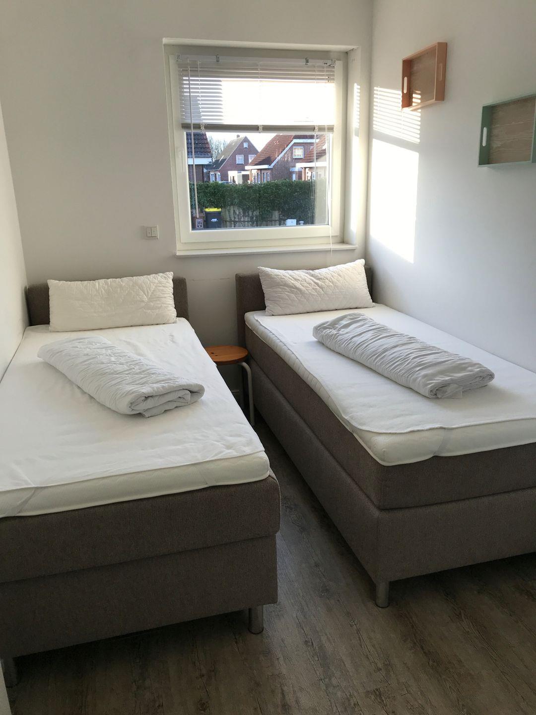 Ein Schlafzimmer mit 2 Boxspring- Einzelbetten