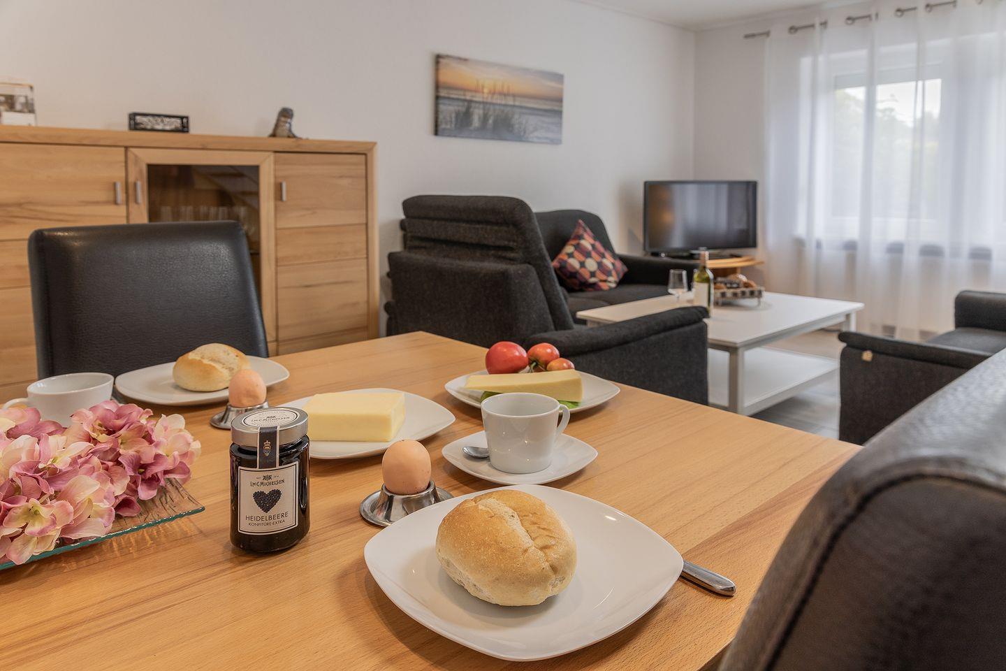 Helles, 2022 renoviertes Wohnzimmer mit Essecke, Sat- TV