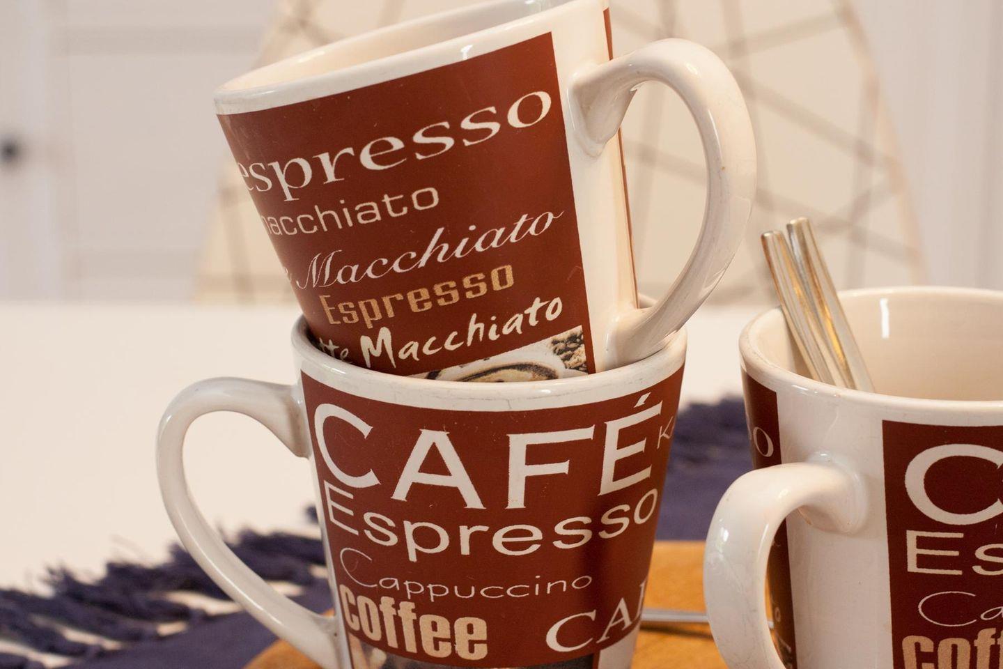 Die Küche verfügt über Herd, Backofen, Mikrowelle, Kühlschrank, Spülmaschine und weitere Elektrogeräte.