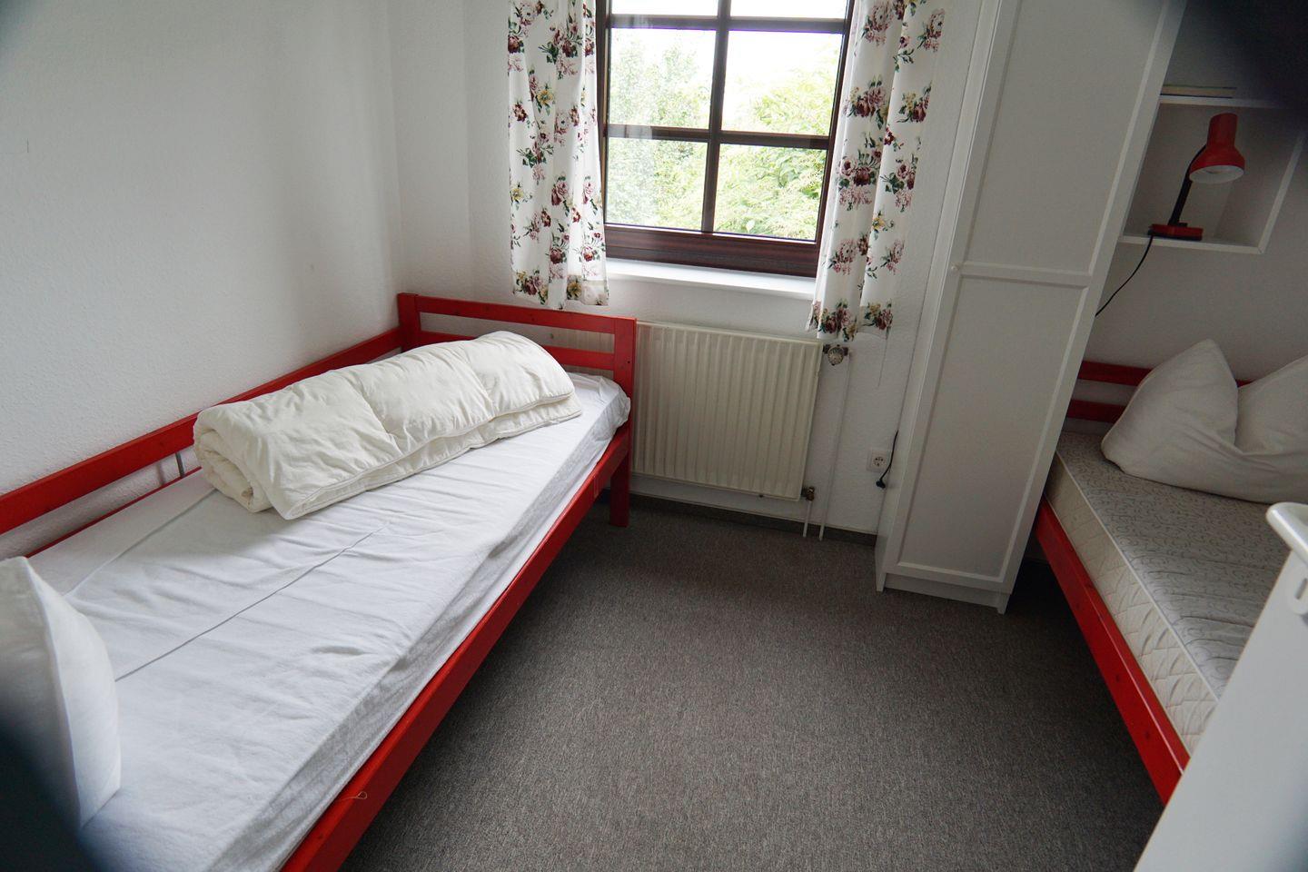 1 Schlafzimmer mit Doppelbett, zustellbares Kinderreisebett, 1 kleines Schlafzimmer mit 2 Einzelbetten, Bad mit Dusche, WC und Waschmaschine.