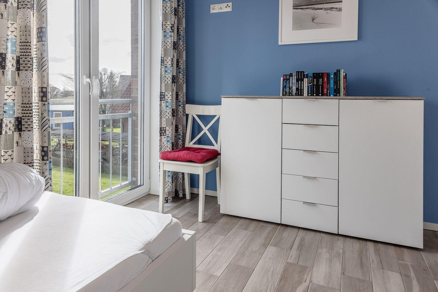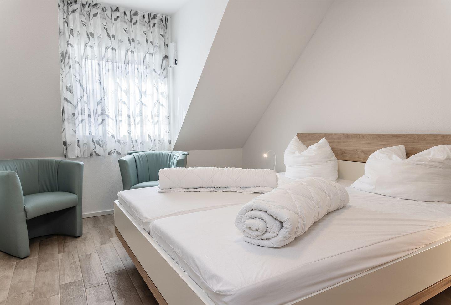 Ein Schlafzimmer mit Doppelbett, 1 Schlafzimmer mit 2 Einzelbetten.