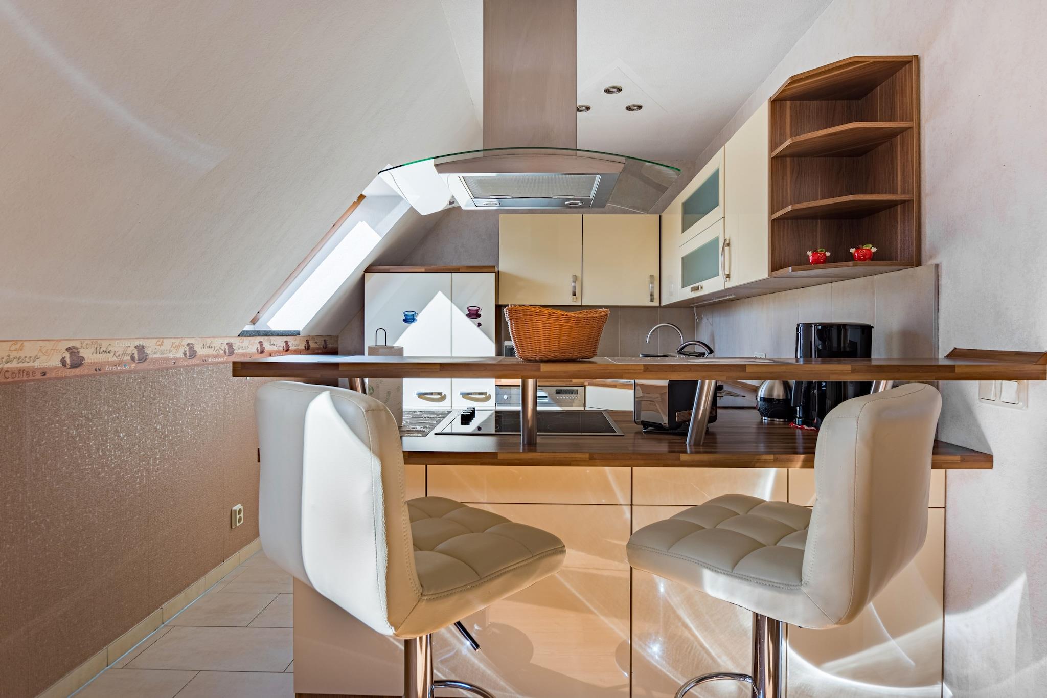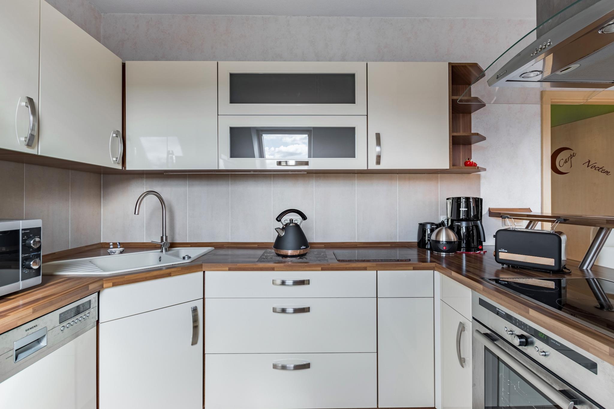 Denne charmerende lejlighed på første sal i Cattenstedt tilbyder et hyggeligt og stilfuldt tilflugtssted, kun 2 km fra Blankenburgs maleriske centrum. Den er ideel til par eller små familier og ligger tæt på topattraktioner såsom den imponerende Teufelsmauer (Djævelens mur), det historiske Blankenburg Slot og den spændende Titan RT hængebro. For en kulturel oplevelse kan du besøge Barokhaven eller Herberg Museum, og nyde naturen i den nærliggende Blankenburg Klatreskov. Lejligheden har en hyggelig stue/spisestue med pejs, satellit-tv og et siddeområde. Det åbne køkken er udstyret med en bar, en keramisk kogeplade, en ovn, en mikrobølgeovn, en opvaskemaskine og en filterkaffemaskine. To soveværelser – et med en dobbeltseng og et med to enkeltsenge – og et badeværelse med badekar og bruser sikrer komfort. Yderligere faciliteter inkluderer en balkon, gas- og brændevarme, en børneseng, en vaskemaskine (mod gebyr), en grill (efter anmodning), brætspil og en parkeringsplads. Omgivet af skovstier og kun få skridt fra offentlig transport er beliggenheden ideel til eventyr året rundt.
