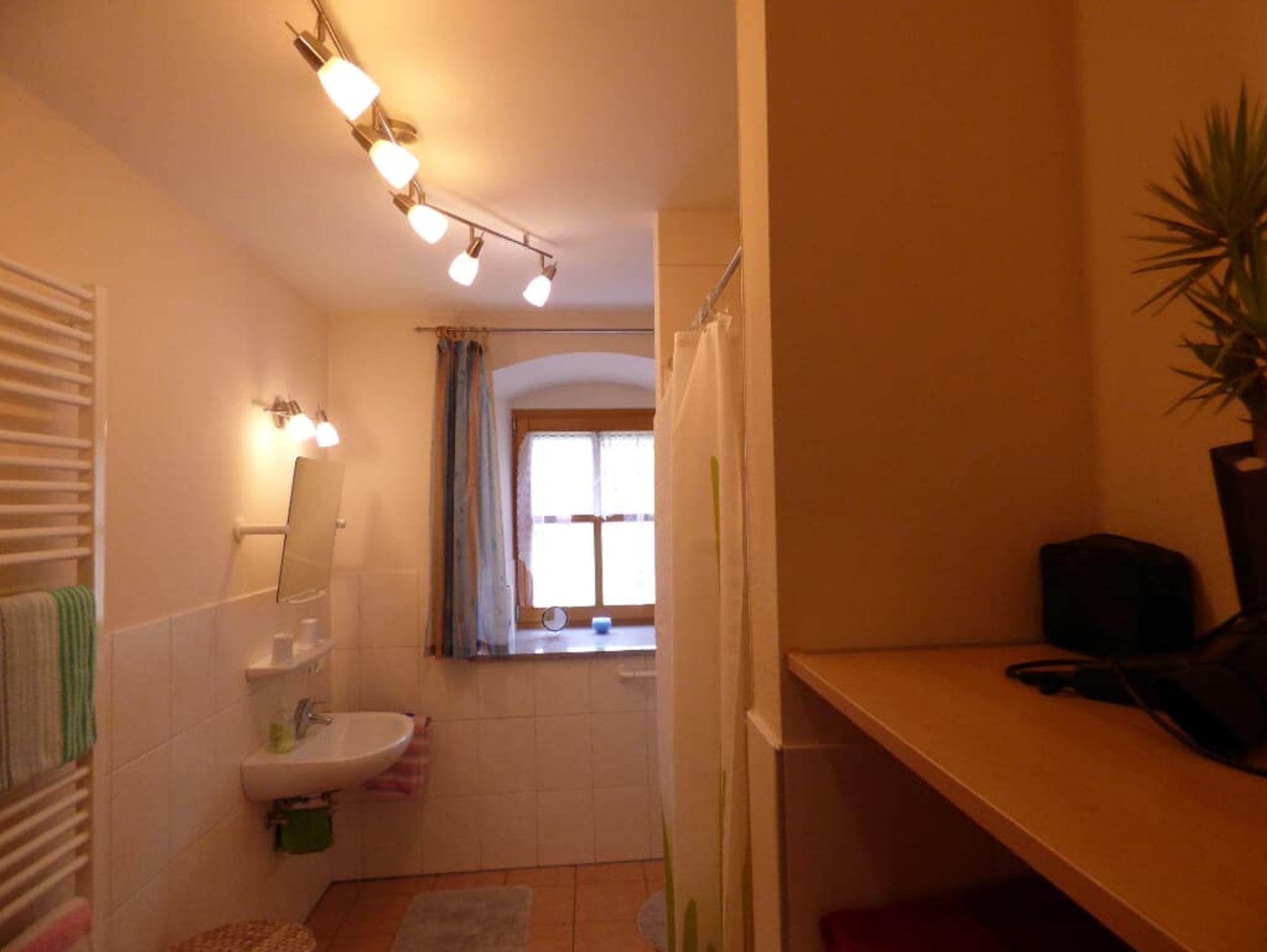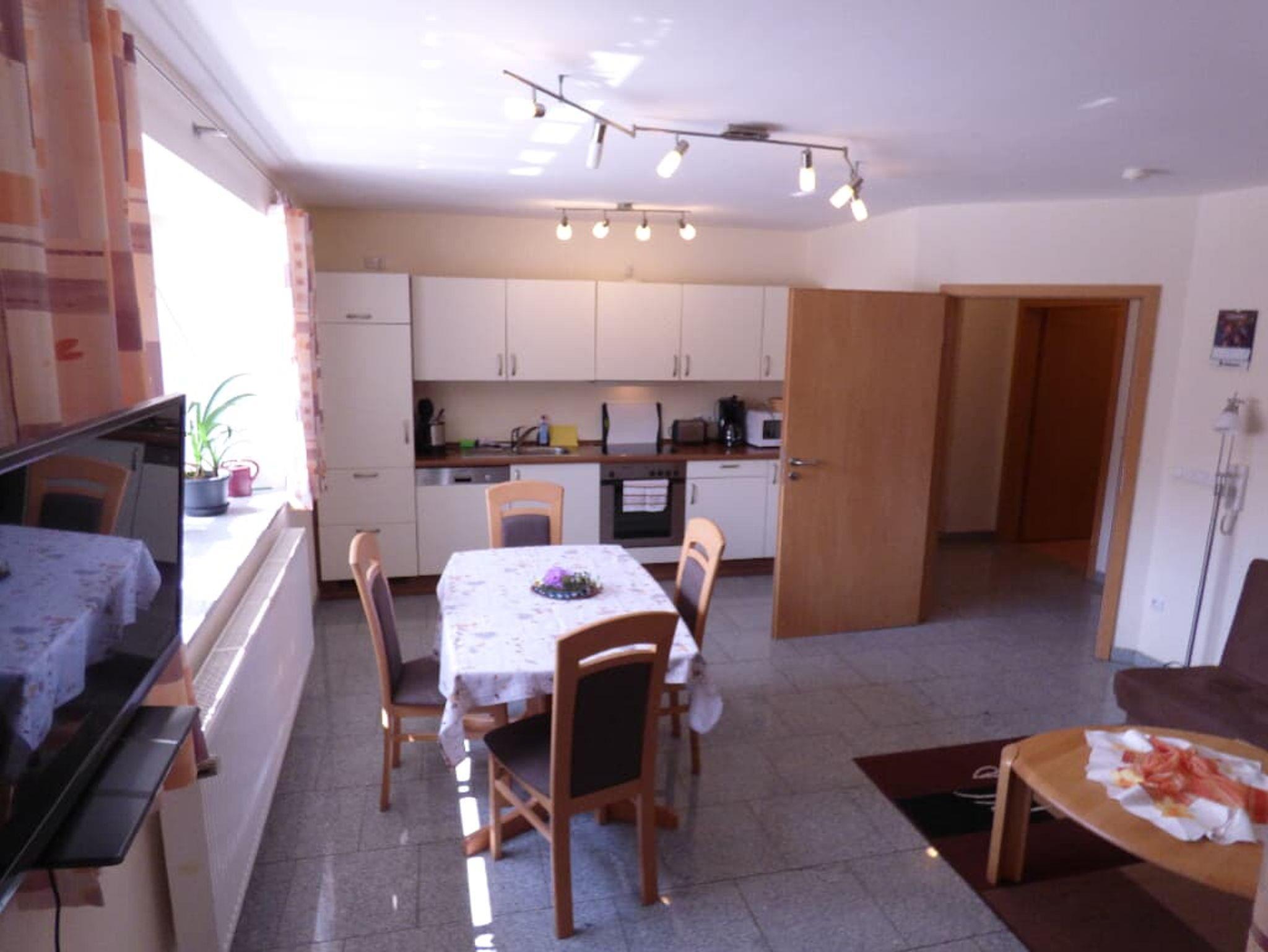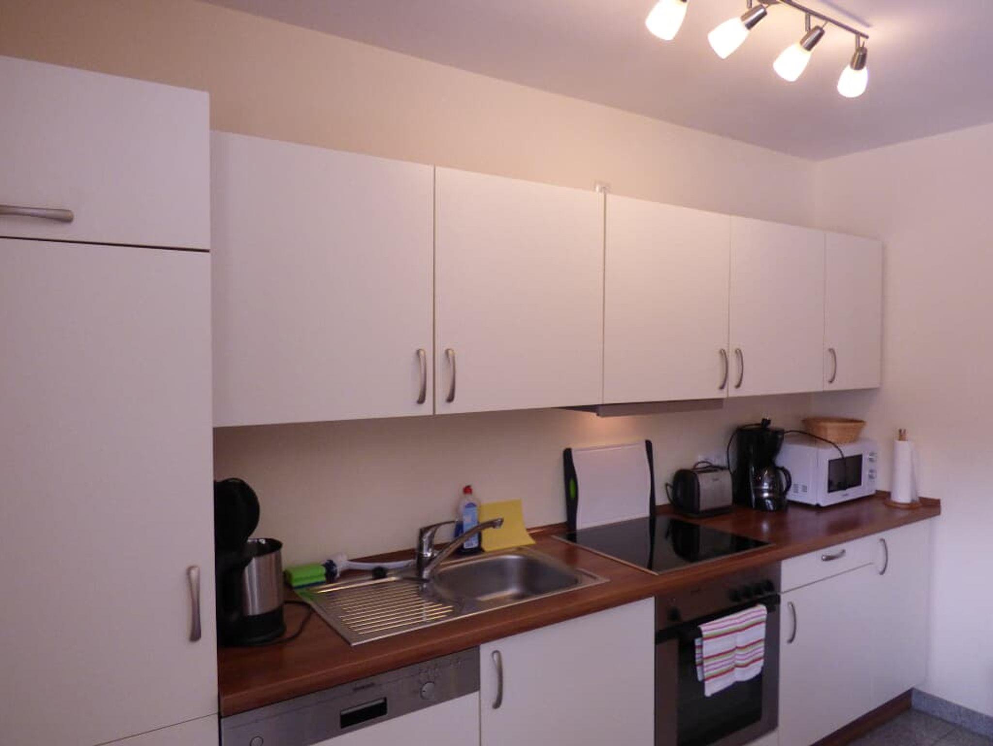 Die Ferienwohnung Hofblick ist 55qm groß, behindertengerecht und für 2 Personen ausgelegt. Im schönen Schlafzimmer befindet sich ein gemütliches Doppelbett mit getrennten Matratzen und ein Kleiderschrank. Die moderne Küchenzeile der Wohnküche ist voll ausgestattet mit Backofen, Geschirrspüler, Kaffeemaschine, Kühlschrank, Mikrowelle, Toaster sowie Tisch- und Küchenwäsche. Der Wohnbereich verfügt über eine gemütliche Sitzecke, Sofa, Sat-TV und Radio. Das Badezimmer ist mit ebenerdiger, mit dem Rollstuhl befahrbarer Dusche, WC, Handtuchtrockner und Föhn ausgestattet. Auf der großen Terrasse können Sie die Sonne genießen. Bettwäsche, Handtücher, Endreinigung, Parkplatz und WLAN sind im Preis inbegriffen.